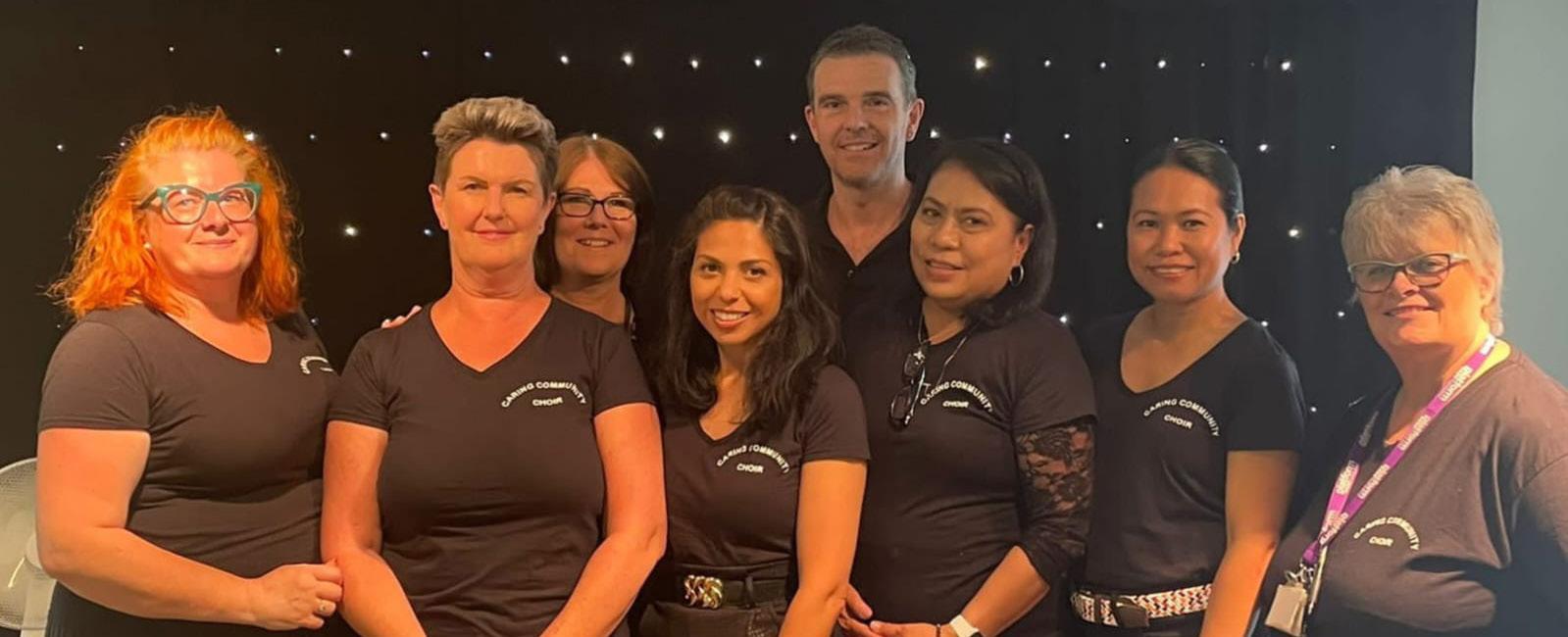 Made up of team members from Agincare and accommodation partner Platform, the choir was started by Senior Care Worker Bridgette Barratt (pictured second left) and her pianist brother Simon.