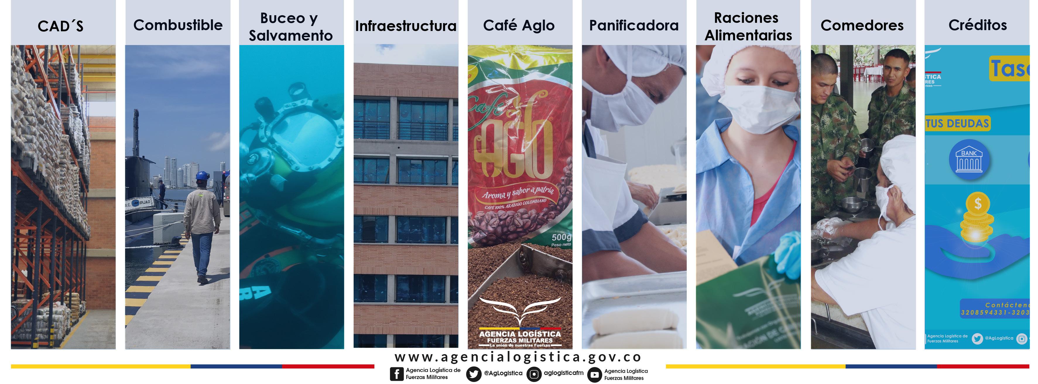 Es así como la Agencia Logística de las Fuerzas Militares asume la responsabilidad de ser el principal aliado estratégico y logístico del Ejército Nacional, la Armada Nacional y la Fuerza Aérea Colombiana, respondiendo a los requerimientos de abastecimientos en todo tiempo y lugar, con el fin de ser el soporte de las operaciones a nivel nacional para nuestros hombres y mujeres de las Fuerzas Militares.