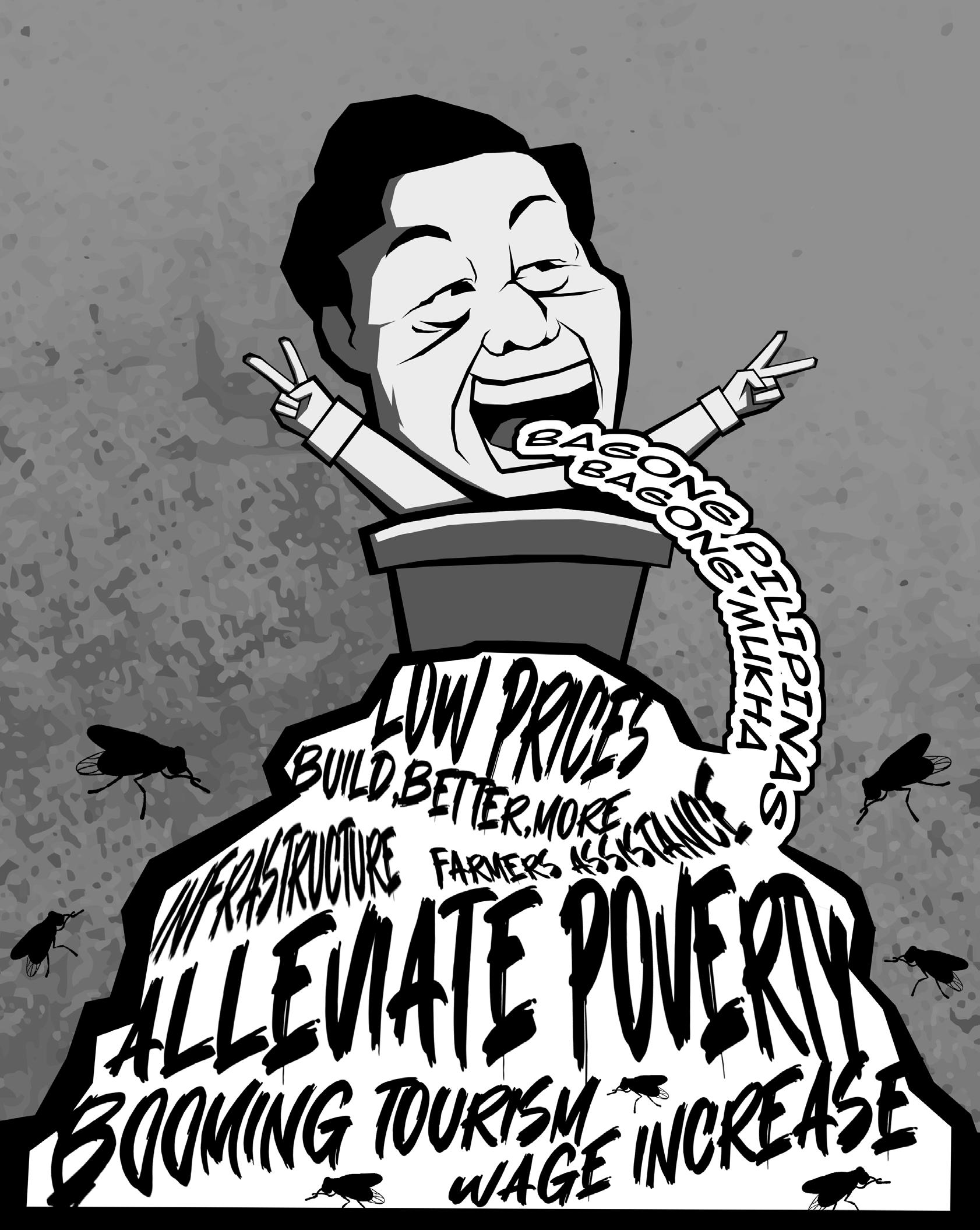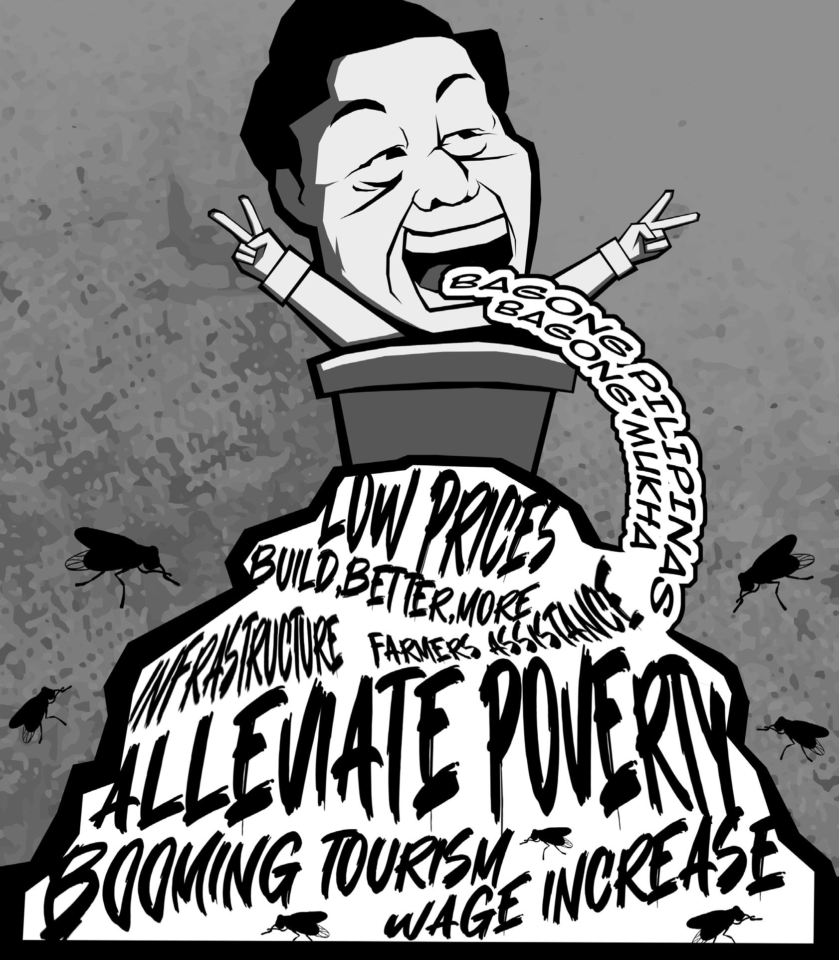 while highlighting the accomplishments of his administration. However, there were unsettling echoes in the carefully constructed rhetoric that cannot be ignored. As the country grapples with pressing challenges such as poverty, unemployment, and a struggling healthcare system, BBM’s address was devoid of any specific plans or concrete timetables to resolve these critical issues. Although Marcos emphasized prioritizing accessible health care, barely any headway has been made in the country’s health sector since his term began. The absence of health care policies and concrete vision reflects the president’s indifference towards the welfare of health workers and citizens. The public was instead left in the dark and with no real understanding about how these lofty ideals will be realized because it was instead filled with nebulous promises of “change” and “progress”.