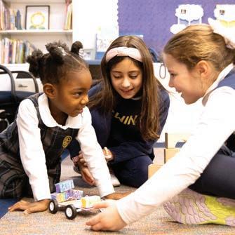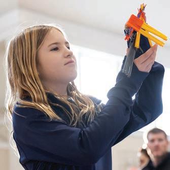 Fourth grader Helen Ligman ’32 (pictured here) engineered a mechanized K’Nex configuration in Robotics Club. “Engaging in robotics cultivates critical thinking abilities and promotes a deeper understanding of STEAM subjects,” said Lower School STEAM Specialist Mary-Tyler Upshaw. “The girls must practice leadership skills and communicate well with each other to make their robotic creations work efficiently. Collaboration and problem solving are key for successfully completing a robotics challenge — and kindness is important when times get stressful.”