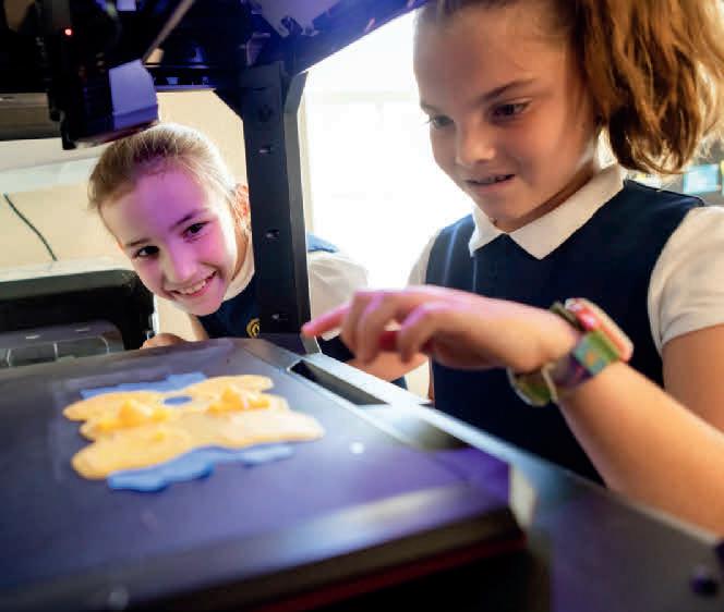Every 5th-8th grade student takes computer science to build fluency in codying, robotics, and design thinking. 9 Third graders use one of the 3D printers in the iWonder Lab. 10 Femme Tech Fatale members put final touches on the robot before a competition.