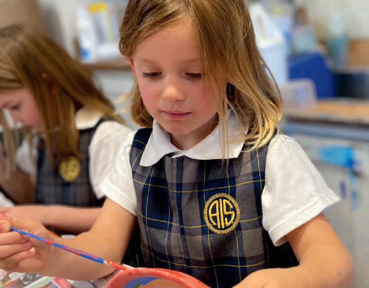 6 In the signature kindergarten art unit on self-portraits, students explore identity through observation, drawing, painting, and creative reflection. 7 Lower School students explore the science of skin color through books, videos, and paint chip matching, then mix their own custom skin tone paint. 8 Lower Schoolers create a ceramic bowl as part of the Empty Bowls project, a service learning initiative that raises awareness about hunger and reflects the School’s commitment to social responsibility. 9 The light-filled Moran Gallery is a creative space where students immerse themselves in drawing, painting, and design work. 10 Upper Schoolers take center stage in a fall musical and a spring play.