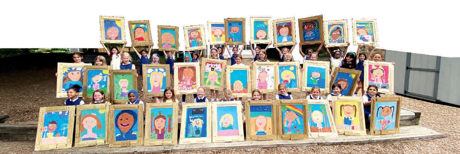 In Lower School, students engage in a diverse range of visual arts. Kindergarteners participate in weekly art classes that reinforce classroom learning, while first graders explore skin color through a science lesson and visit to the Barnes Foundation, culminating in large self-portraits. In 2nd grade, students collaborate on a balloon-making project inspired by the book Balloons Over Broadway and create personalized rag dolls to build fine motor skills. Third graders work together on a quilt project and make keepsake pillows, fostering craftsmanship. Fourth graders maintain an art journal to study female artists, and in the spring, they focus on color and design with large-scale scenery painting for their class play.