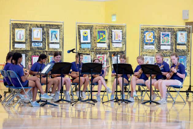 1 In the Textile and Design Studio, students explore sewing, fashion illustration, weaving, embroidery, patterns, and silk screen printing. 2 Lower Schools perform at the annual Spring Sing concert. 3 In our Black Box theater, a versatile space designed for creative expression and performance, dancers rehearse for the annual Dance Motion showcase. 4 Ceramics I and II students explore wheel throwing and hand-building and study clay, glaze, and the firing process. 5 Each year, 7th and 8th grade students stage a musical production, showcasing their talents in performances open to the entire community.
