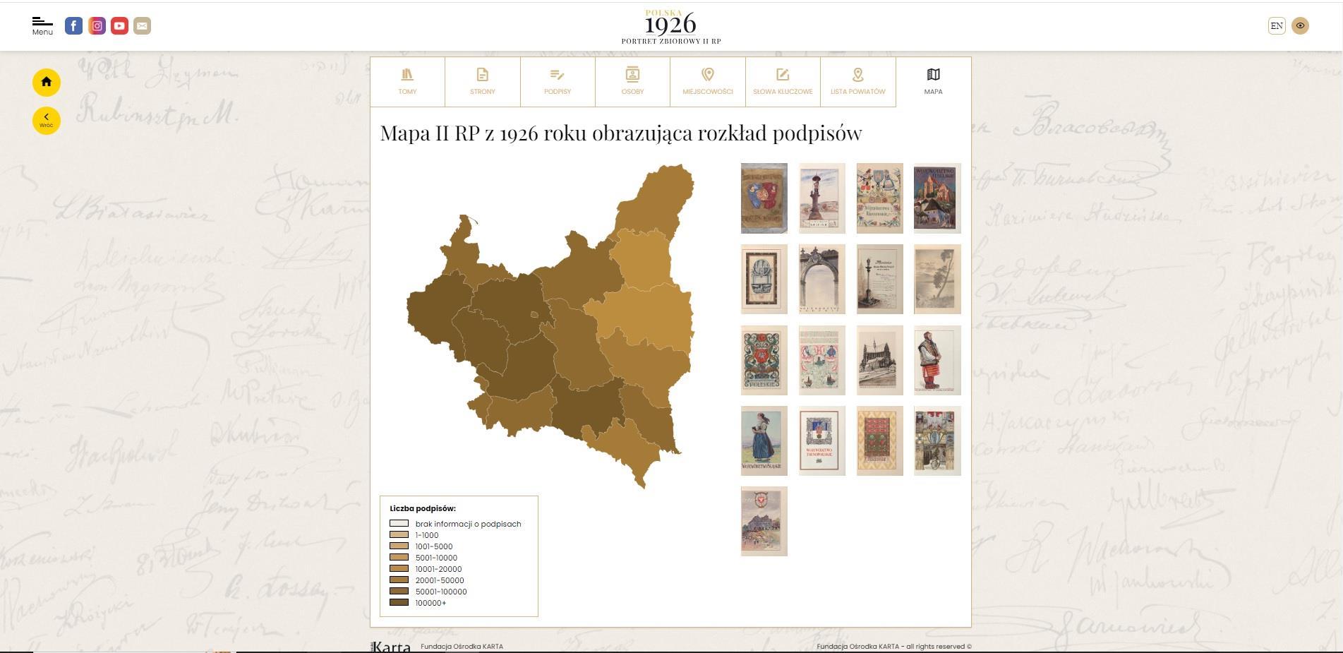 - jak przeglądać / przeszukiwać portal według powiatów/interaktywnej mapy Narzędzie interaktywnej mapy jest szczególnie pomocne, jeśli nie znamy, ani dokładnego nazwiska, ani dokładnej nazwy miejscowości, której szukamy. Poprzez nazwy województw wchodzimy do listy powiatów z podaną w nawiasach liczbą podpisów, zawężamy w ten sposób zakres wyników wyszukiwania.