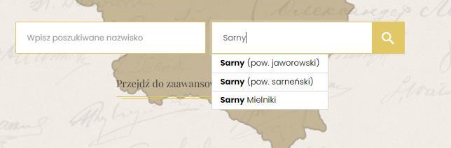 Aby skrócić czas szukania, warto wybrać precyzyjną nazwę miejscowości uzupełnioną o interesujący nas powiat. Jeśli nie znamy nazwy powiatu, możemy zacząć od przeszukania zakładki “Lista powiatów” albo od interaktywnej mapy, która po wejściu w kolejną warstwę wyświetla listę powiatów, które znajdowały się w województwach w 1926 roku.