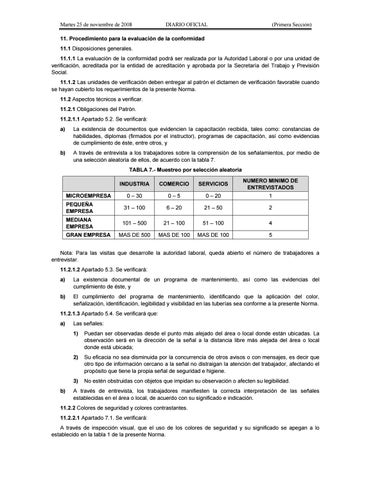11.2.2 Colores de seguridad y colores contrastantes. 11.2.2.1 Apartado 7.1. Se verificará: A través de inspección visual, que el uso de los colores de seguridad y su significado se apegan a lo establecido en la tabla 1 de la presente Norma.
