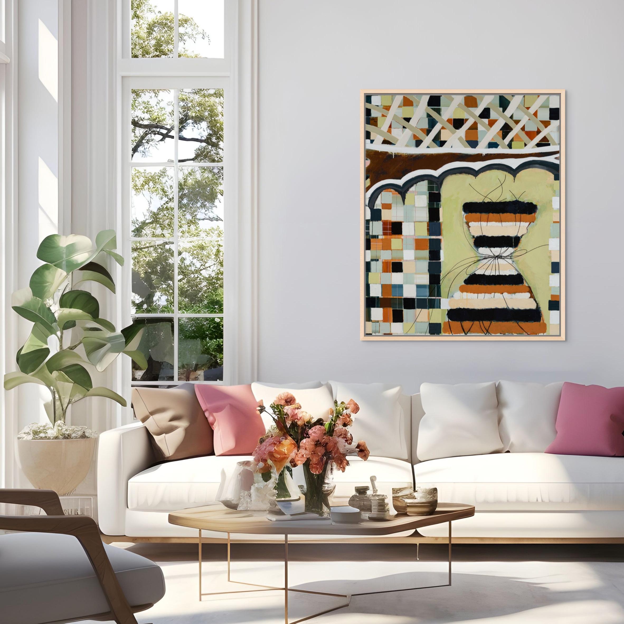 Alli Gerrish is a multimedia artist based in Boulder, Colorado. Over the past two decades, Gerrish’s extensive body of work has spanned painting, digital painting, prints, video, and narrative voiceover. Drawing inspiration from modern masters such as Elaine DeKooning and Cy Twombly, as well as contemporary icons like Amy Sillman and Terry Winters, Gerrish’s art articulates the multifaceted process of metamorphosis and transformation. Her work serves as a dynamic journal, translating energy and encoding iconography into abstract compositions of what Gerrish terms ‘artimation.’ Utilizing simple geometric shapes, soft patterns, and delicate tones, her work evokes a sense of relaxation and comfort. Stripes, circles, and ellipses gently connect and intertwine, creating a serene visual experience. A recurring motif in her paintings is the hourglass shape, symbolizing the artist herself. This decidedly feminine form represents the transformation of personal and societal vulnerabilities into visions of a brighter future dominated by joy and positivity. Gerrish’s unique creative process combines personal narrative with visual storytelling, showcasing the ongoing evolution of her artistic expression.