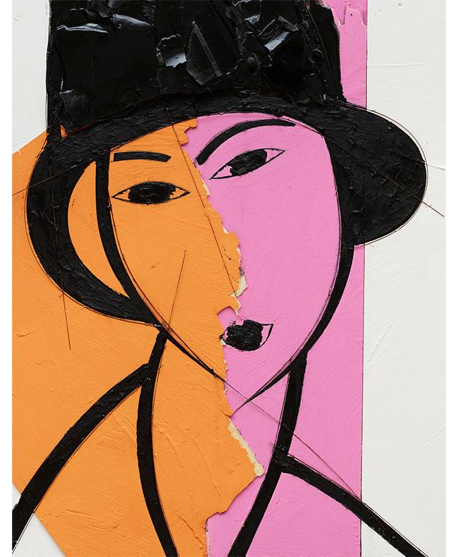Atkinson’s multi-media works combine imagery from his day-to-day life with imagery from pop culture and street art, which are assembled into collaged pieces. Atkinson applies dynamic brush strokes and lines in a gestural mode to contrast the graphic imagery and leaves his makings exposed and unedited. The lack of shading, and inclusion of negative space allows for a focus on both form and symbolism. The diverse range of materials, source imagery, and the artist’s re-contextualization of figures and text prompt all viewers to consider new paths and perspectives of critical thought.