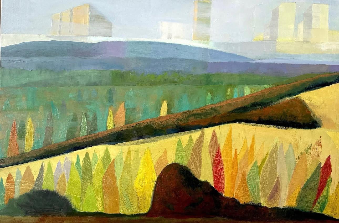 Dita Jacobovitz is a contemporary oil landscape painter. Jacobovitz explores the rural scenes surrounding her home, in her native Israel, activating memories and emotions through intuitively guided gestures and palettes. A member of the Circle Foundation for the Arts and featured in the WE Contemporary Art book in 2021, Jacobovitz has been creating art since she was young. She studied computer science in school, and it was only when she attended art school in Tel Aviv that her career hit a turning point and she developed her own personal style.