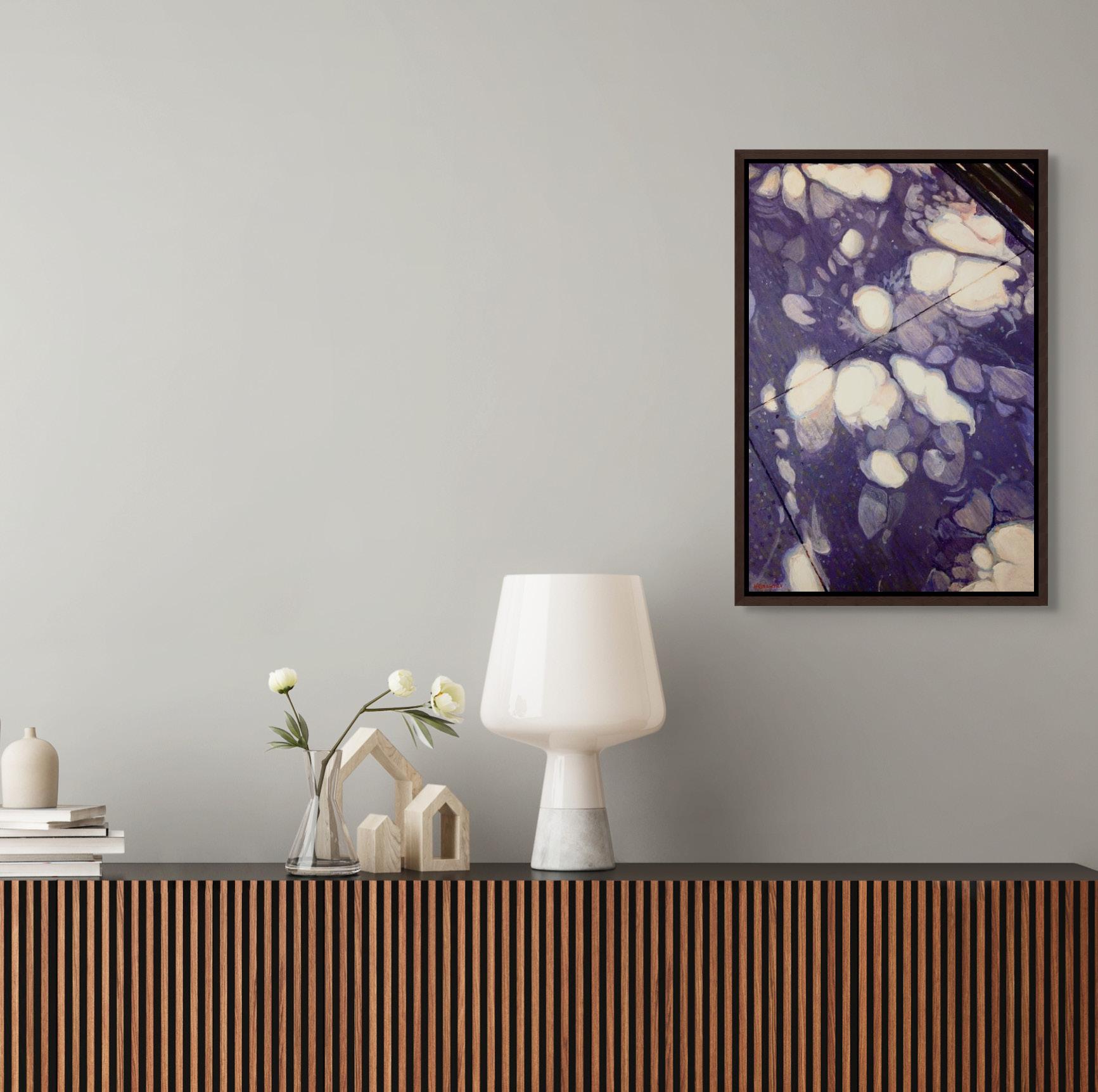 Inspired by the hues and movement of light, artist Holly Grosvenor, studies and captures the luminosity of her natural environments. Grosvenor creates her work both on-site and in the studio, as she selects and magnifies fragments of natural settings to translate in oil and acrylics on her canvases. Her work is a response to her personal experiences in the natural realm, as she creates multiple “plein air” observation sketches in watercolor on site, as well as detailed photographs of the space, and returns to her studio to recreate these environments in oils and more recently, acrylics. Acrylics as a medium allowed Grosvenor to delve more deeply into the behavior of reflection and translucency on water and reflective surfaces, as it granted her more time to develop each painting and emphasize the details of the natural phenomena.