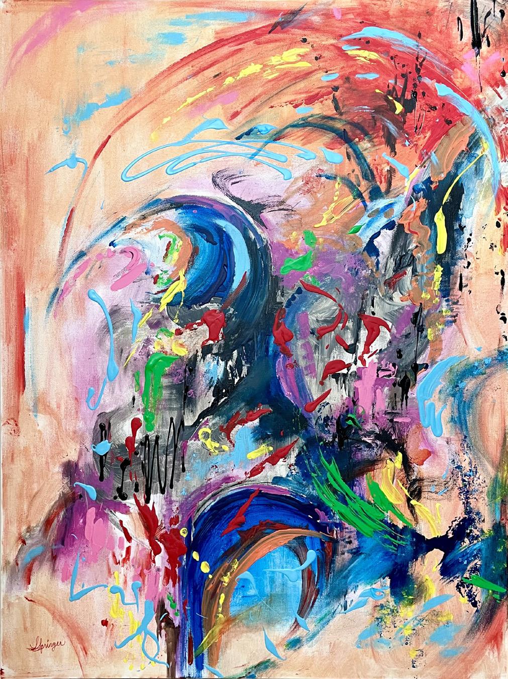 Today, painting is a way for her to channel feelings of joy and pain, treasured memories, regrets, and many other emotions. “I want to connect the viewer with a sense of the fragility of life, as well as the importance and joy of living in the present. Pressing forward, hopefulness, positive and grateful living will help you better navigate through struggles in life.” Springer paints abstract expressionism with color and movement while choosing titles that also express these messages or themes. Alternating delicate shading and thick dynamic markings. When painting, Springer lets herself go completely, feeling her way on the canvas instinctively. Springer’s ebullient yet reflective personality shines through each of her paintings.