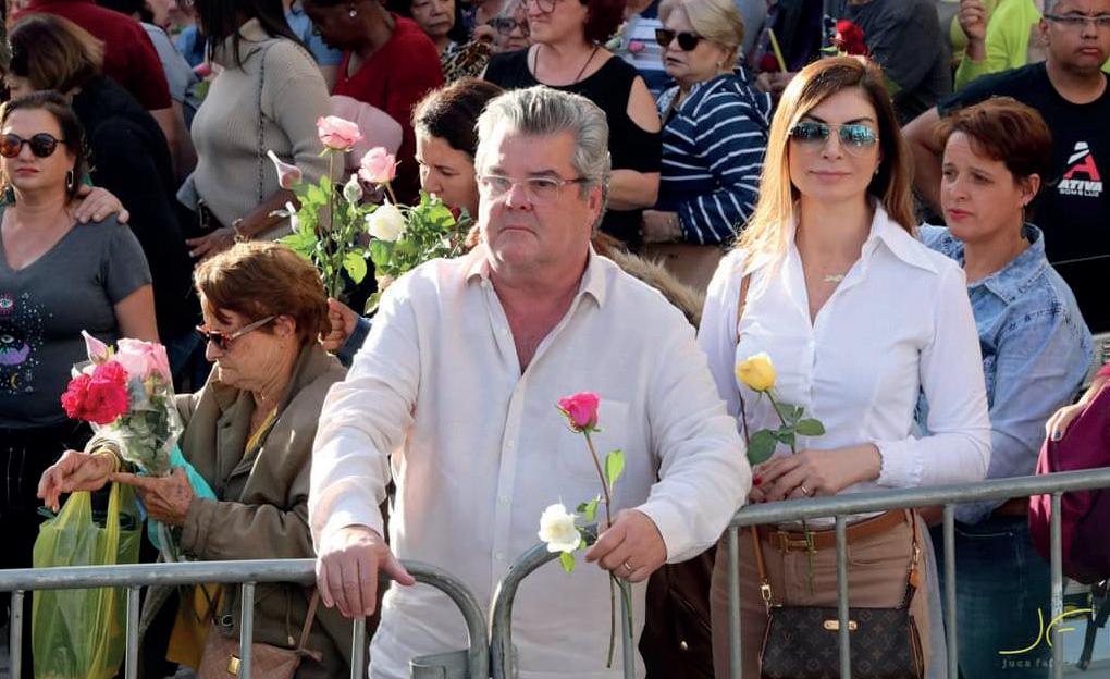 Durante a celebração, também houve a benção das rosas dos fiéis, e este ano teve chuva de pétalas da flor (uma homenagem do em-