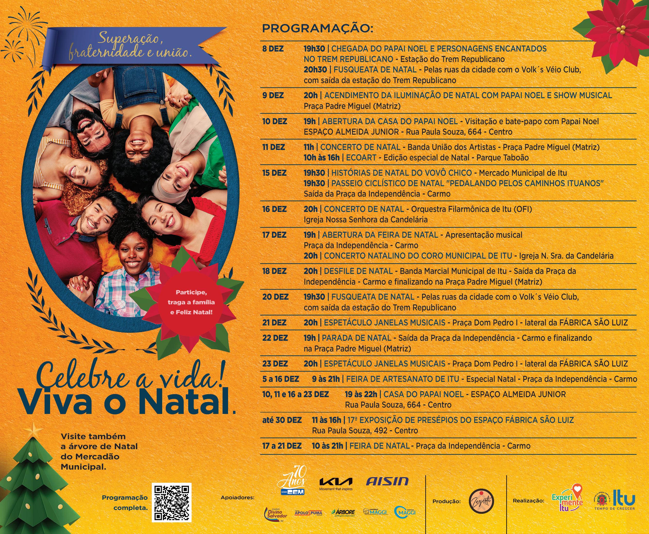 Toda a população poderá prestigiar os atrativos e shows que prometem agradar crianças e adultos. Realizada em parceria com a iniciativa privada, a proposta é união, partilha e fraternidade, trazendo a temática “Celebre a Vida, Viva o Natal”. Confira na página 5.