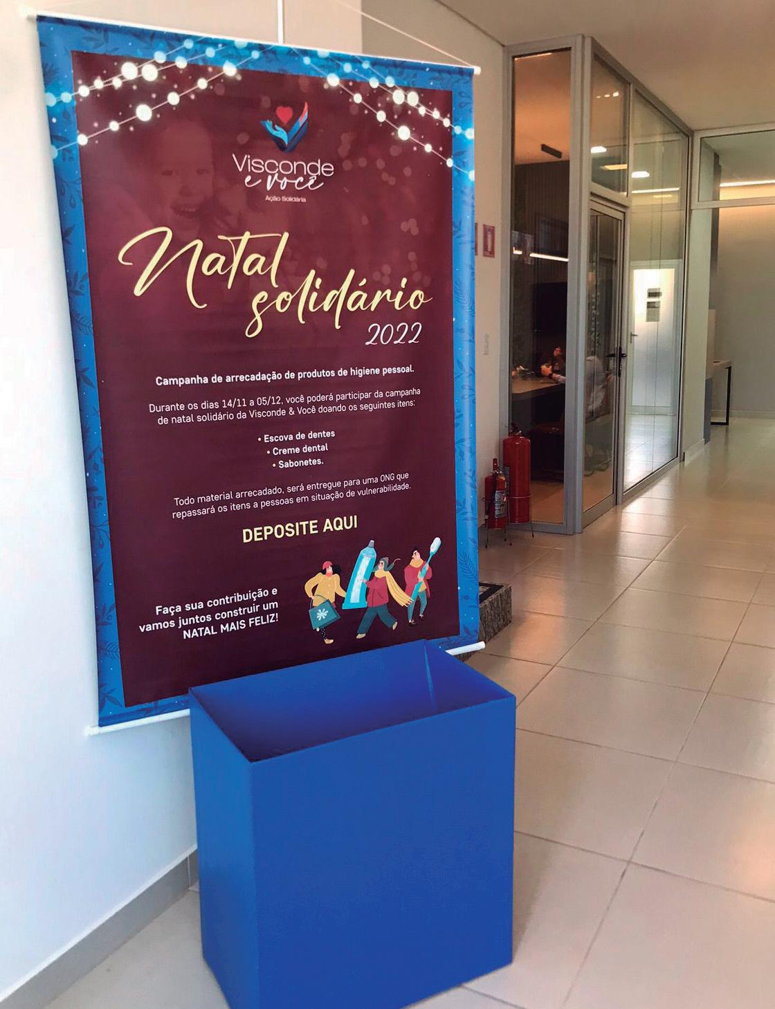 A campanha Natal Solidário 2022 integra uma série de ações que a Visconde Construtora, por meio do selo Visconde & Você, realiza ao longo do ano com o objetivo de apoiar as comunidades com pessoas em situação de vulnerabilidade social. Neste ano, já foram realizadas arrecadações de agasalhos e itens de inverno, leite em pó, brinquedos, entre outros.