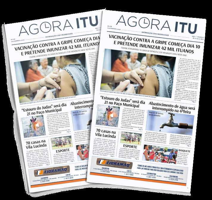 2 BASTIDORES ITUANOS EDITORIAL GIRO PELO MUNDO ANUNCIE JÁ 11 2715-7609 Jornal Agora Itu agoraitu.com.br Jornal Agora Itu SIGA O JORNAL AGORA ITU Comercial comercial@editoram.com.br Realização Direção Gabriel Miloco Barbosa gabriel@editoram.com.br Diagramação Dorival Cardeal Jornalismo jornalismo@editoram.com.br Tatiana Saggion IMAGEM DA SEMANA