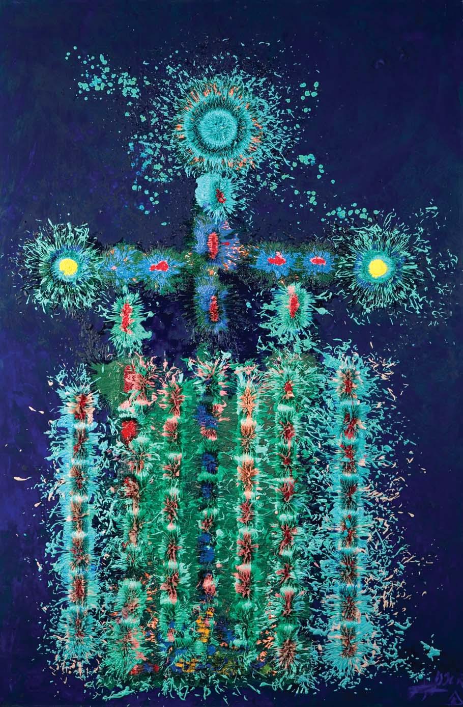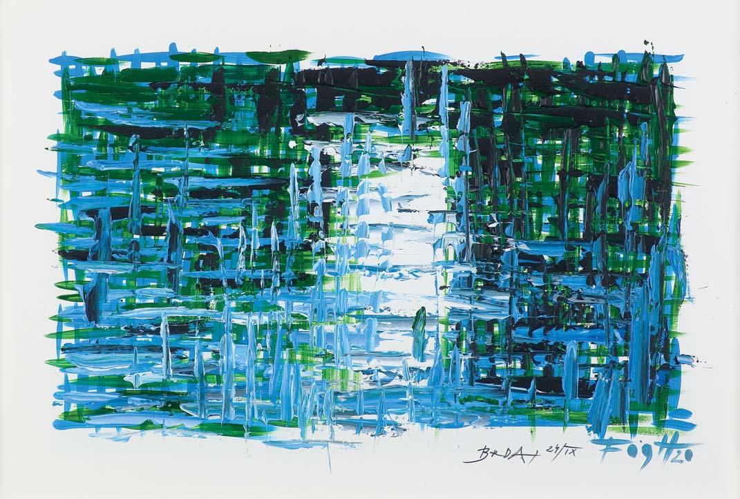 akryl, płótno, 81 x 70 cm; sygn. p.d.: YERKA 21 sygn. na odwr. na dolnej listwie krosna flamastrem: JACEK YERKA | >>ZŁOTOUJŚCIE<<, obok: AKRYL | 2021
