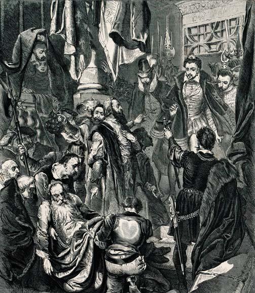 Obraz przedstawia przejście z sali Salomona do Galerii Obrazów w Pałacu na Wodzie. Na ścianie jest widoczny fragment obrazu Marcellego Bacciarellego Ofiara Salomona. Dzieło to zostało zniszczone w czasie II wojny światowej.