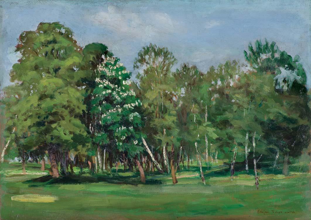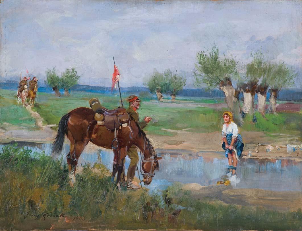 rodzime pejzaże skupiając się przede wszystkim na widokach Karpat. Częsty w twórczości artysty w owym czasie był również folklor huculski, sceny zagrodowe i pasterskie. Później w jednym z wywiadów mówił: Wielki wpływ wywarli na mnie Cezanne i Renoir. Ze starszych przemawia do mnie najwięcej Watteau. Jest w nim coś, czego się nauczyć nie można, co leży we krwi malarza. Istnieje w malarstwie coś, czego nigdy nie można będzie nazwać, co leży poza wszelkiemi prawami kompozycji i kolorystyki. Chciałbym kiedyś tak namalować pejzaż, ażeby odczuł go chłop, związany z ziemią i naturą. Bardzo tęsknię za pejzażem polskim; jest piękniejszy niż na ogół sądzą Również światło w Polsce jest wielce ciekawe.
