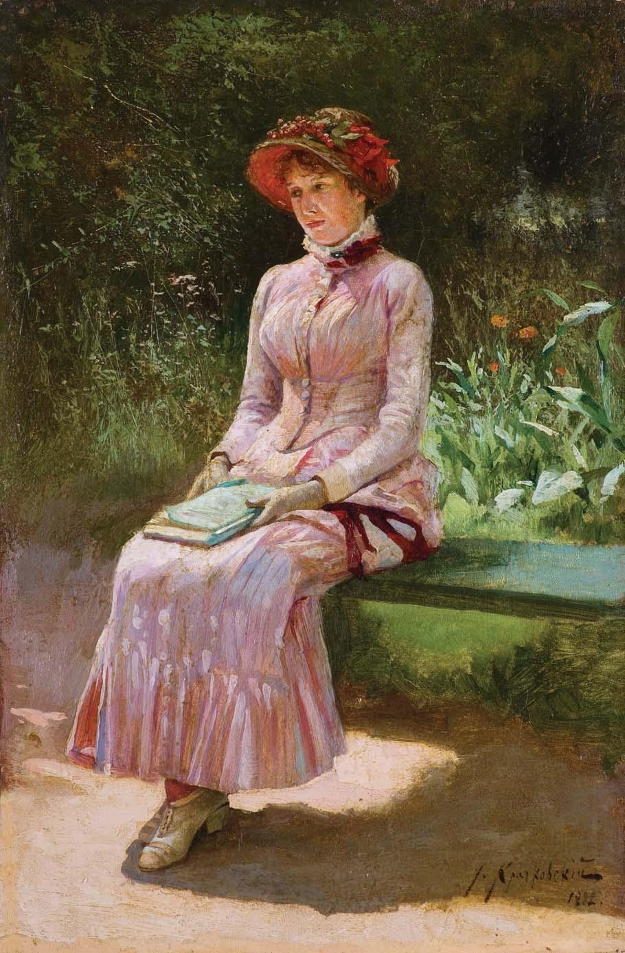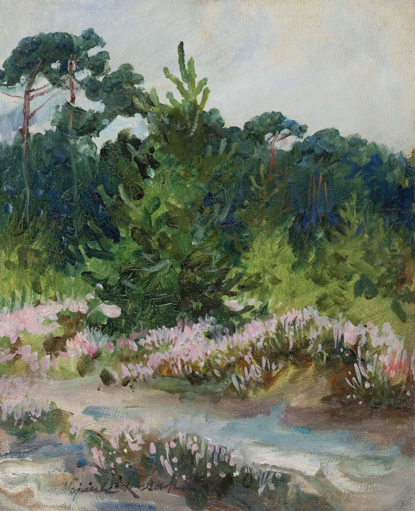 olej, płyta, 50 x 40 cm sygn. p.d.: M. Vrbová Na tzw. zaplecku przy górnej krawędzi nalepka firmy ramiarskiej: REIM | Bilder – Spiegel | Kunstgewerbe | BAD – CANNSTATT | AM ERBSENBRUNNELE.