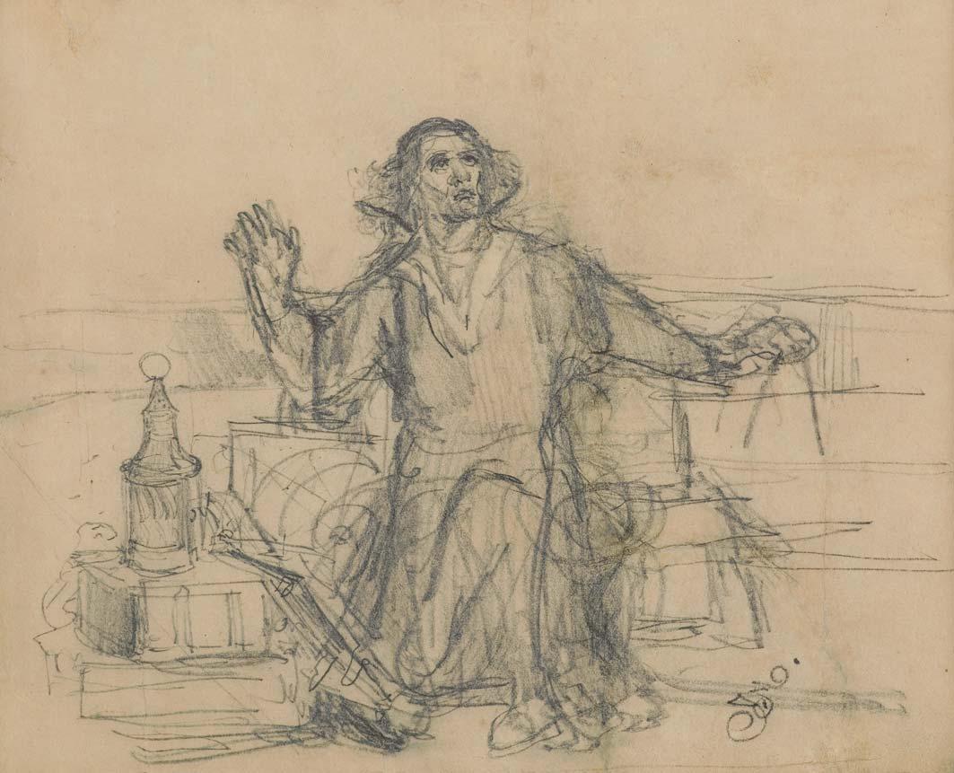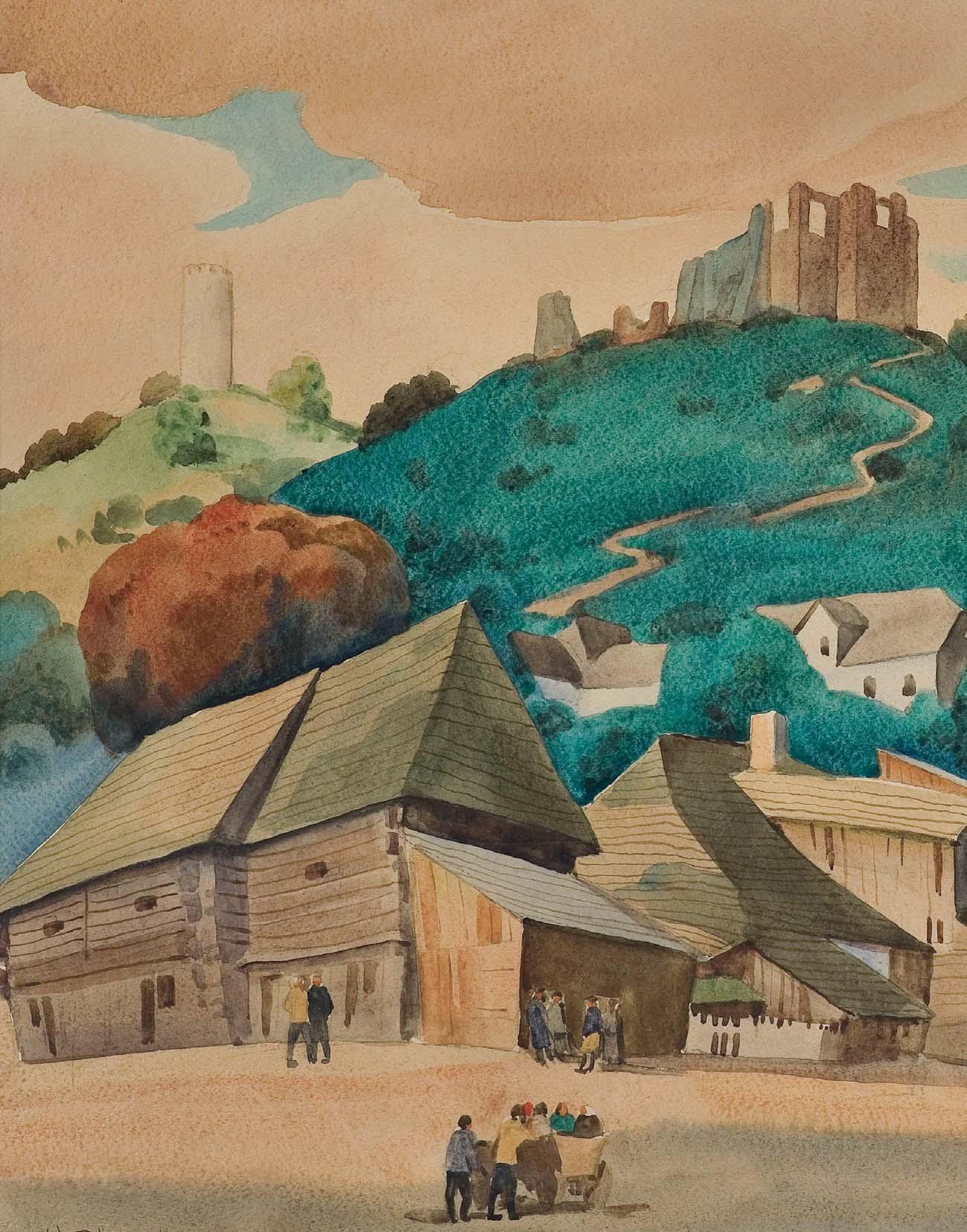 ołówek, akwarela, gwasz, papier, 16,5 x 24,5 cm autorski napis d.: WNOWAWIEŚROSYTASEŁO200ZŁ