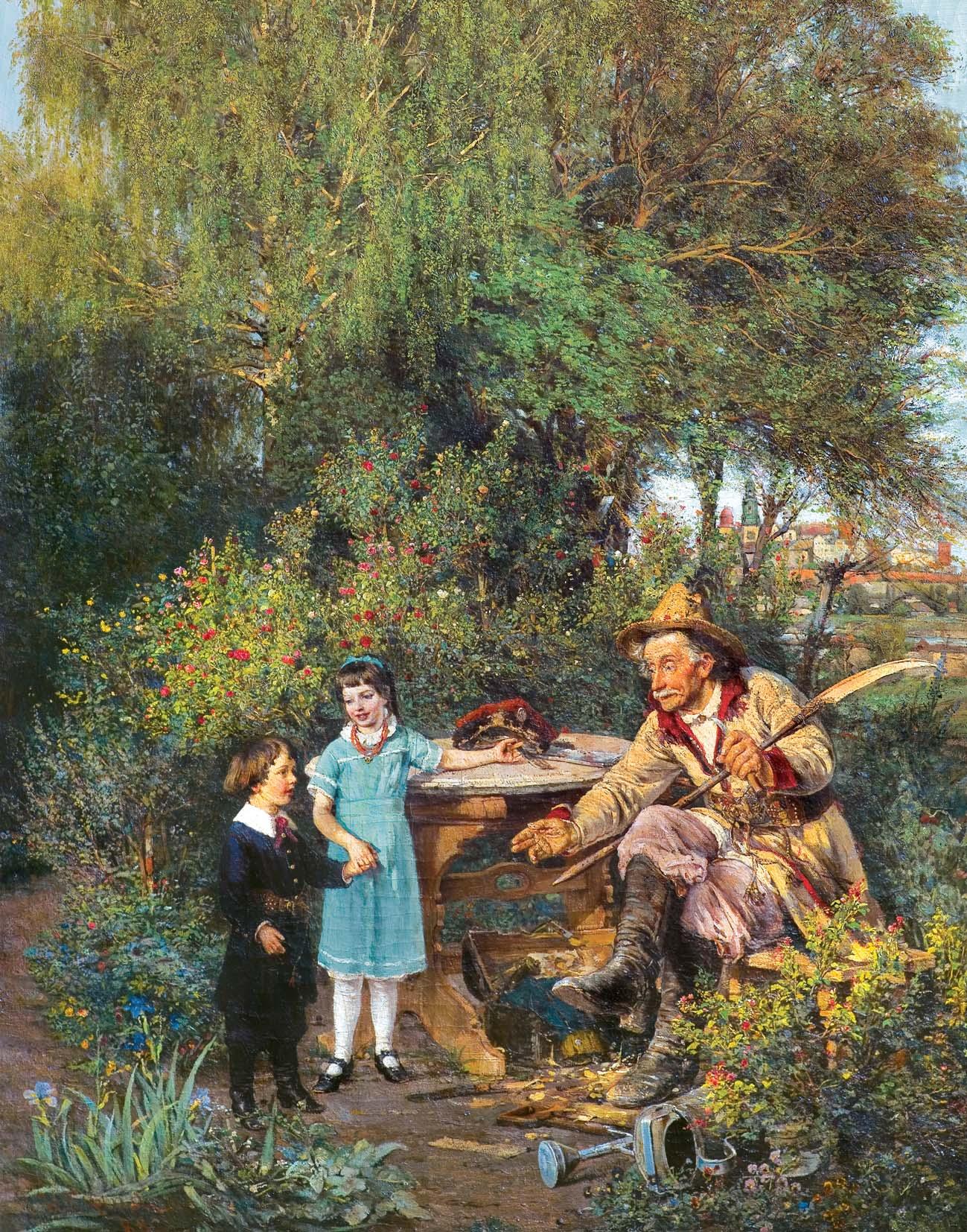 olej, płótno, 95,5 x 110,5 cm sygn. p.d.: J. Burger | Mchn. Na odwrocie, na górnej listwie ramy nalepka aukcyjna Agra-Art z 2003 roku.