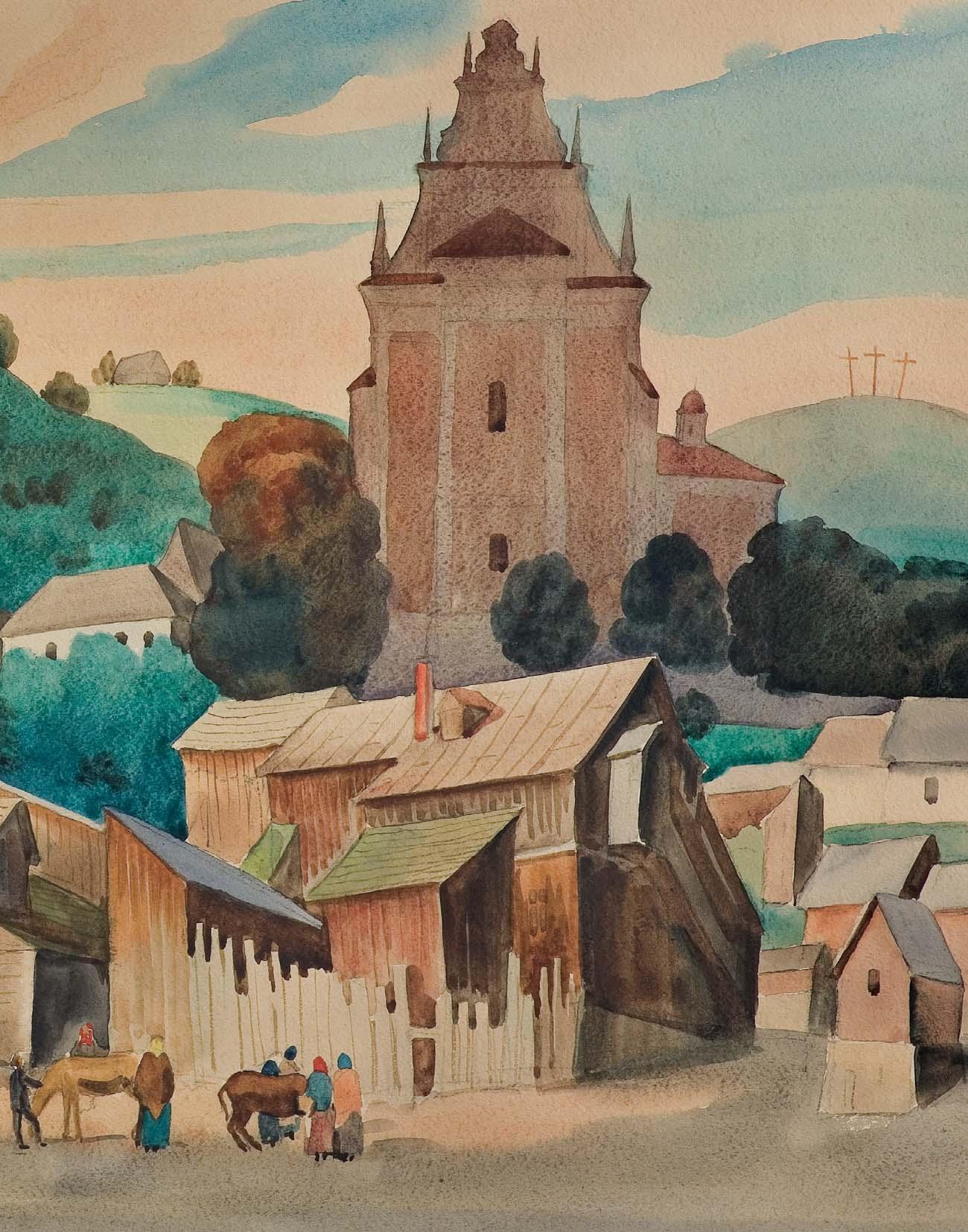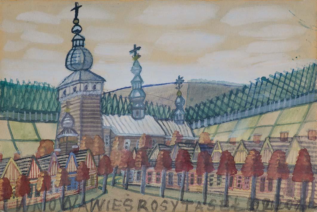 PEJZAŻ MIEJSKI Z DREWNIANYM KOŚCIOŁEM