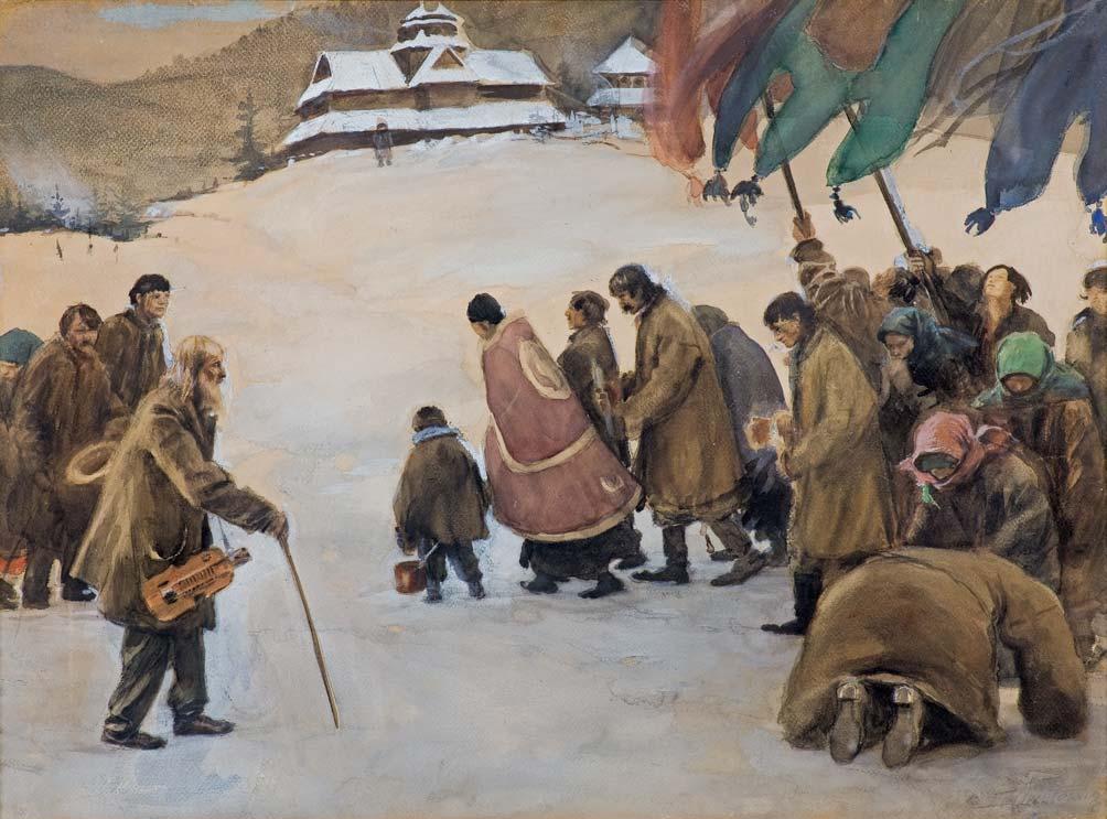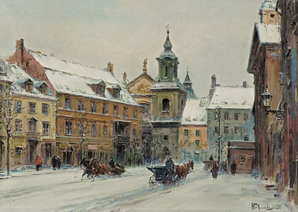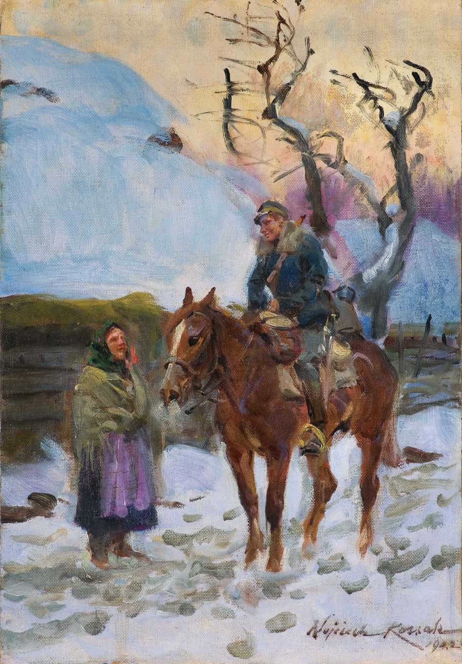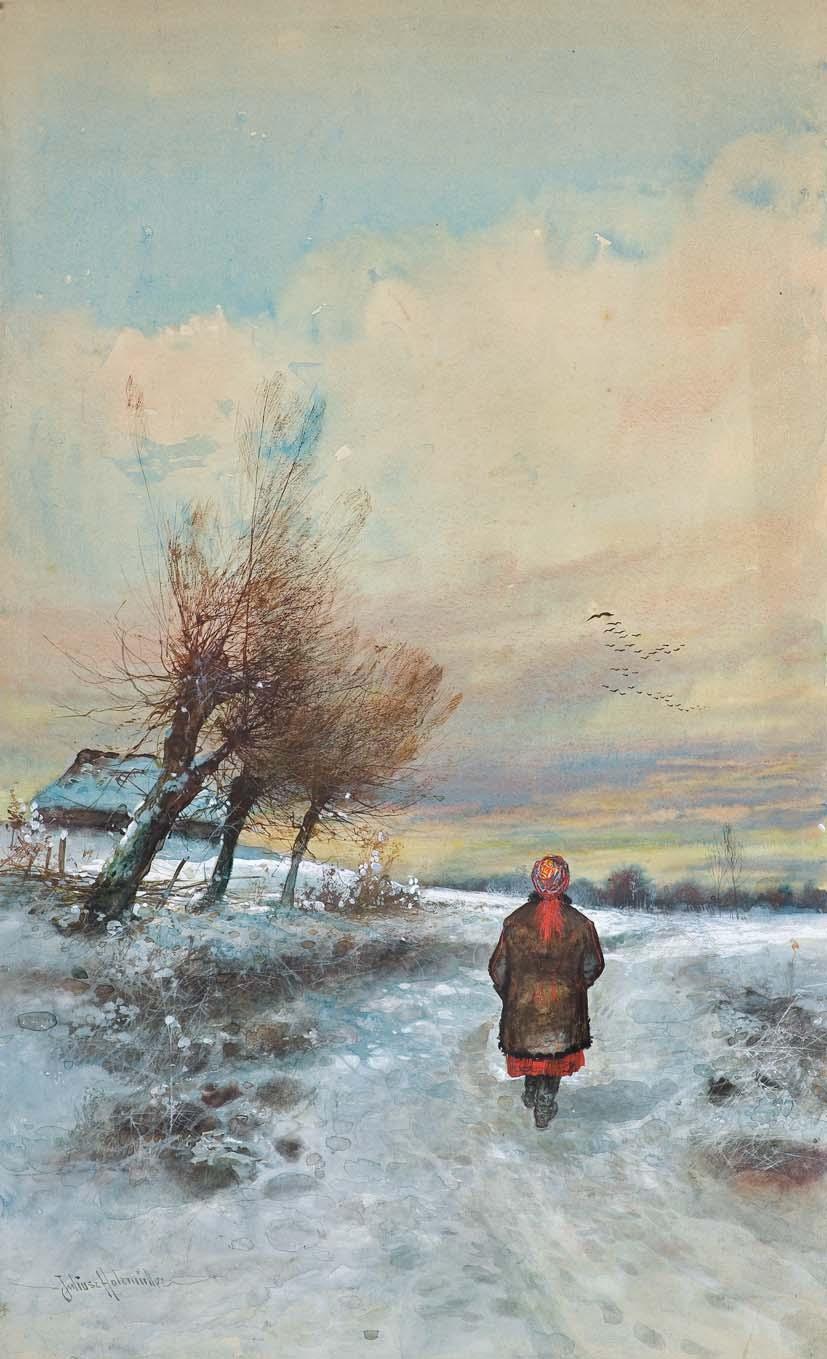 PEJZAŻ ZIMOWY Z SUROCHOWA, 1931 olej, płótno, 54,2 x 64,8 cm sygn. p.d.: M. de Rakowski | Surochów 1931.