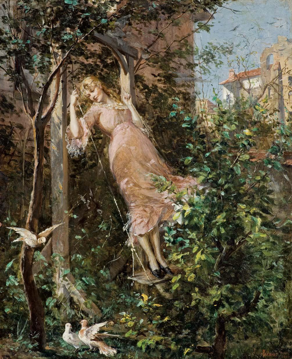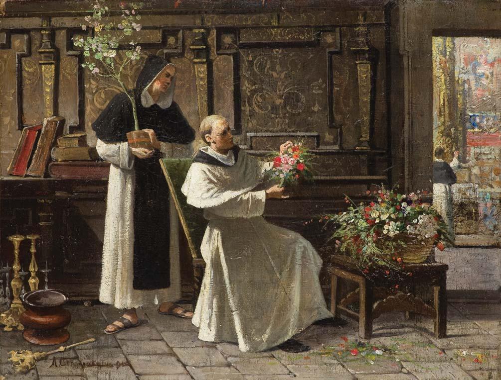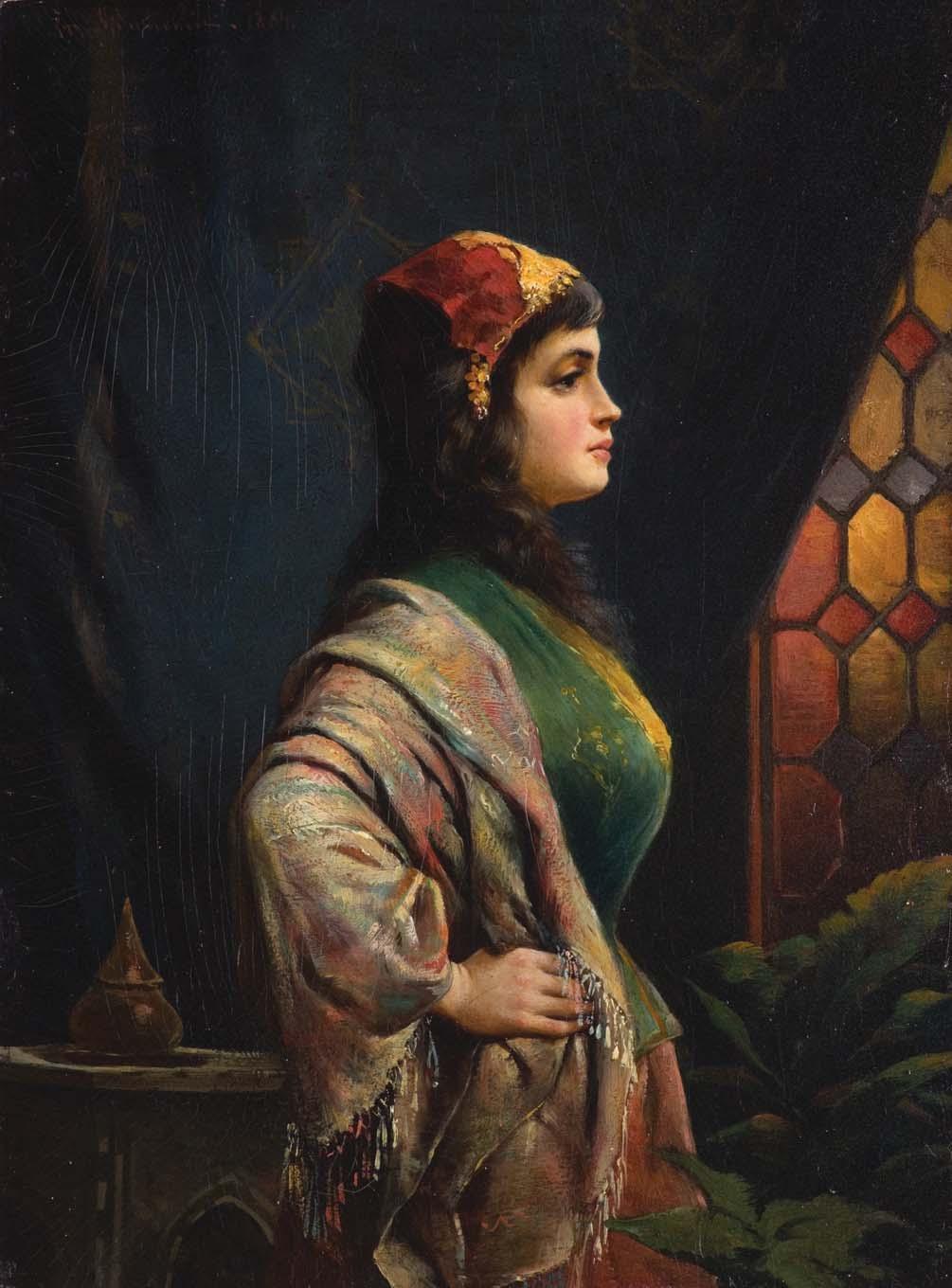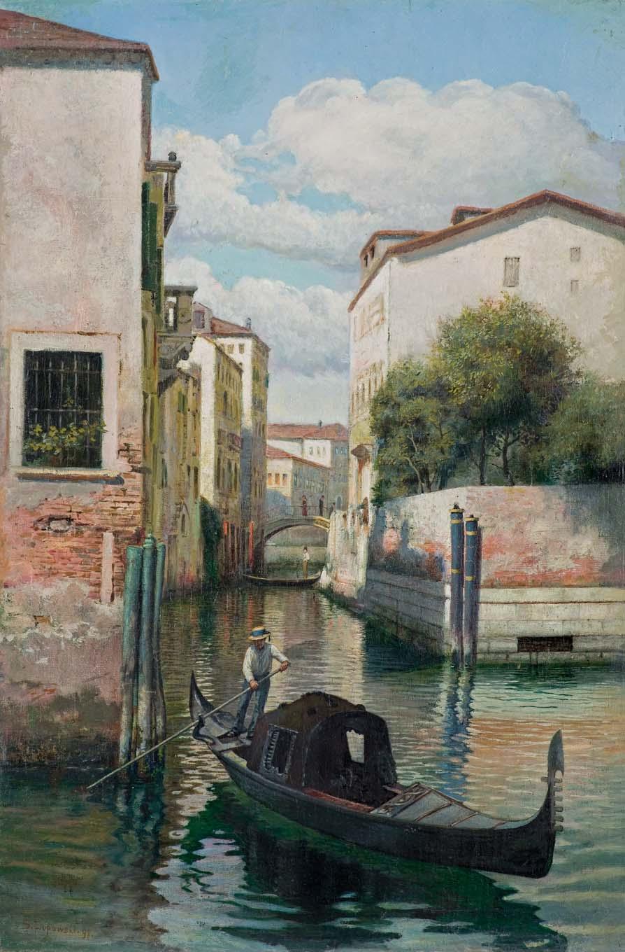 olej, płótno, 50 x 61 cm; sygn. l.d.: Ebiche na odwrocie na dolnej listwie ramy nalepka paryskiego zakładu ramiarskiego Delf Cadres d’Art