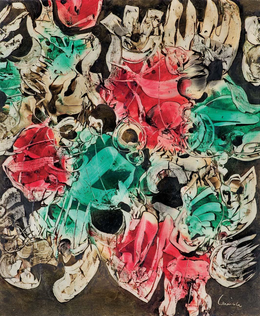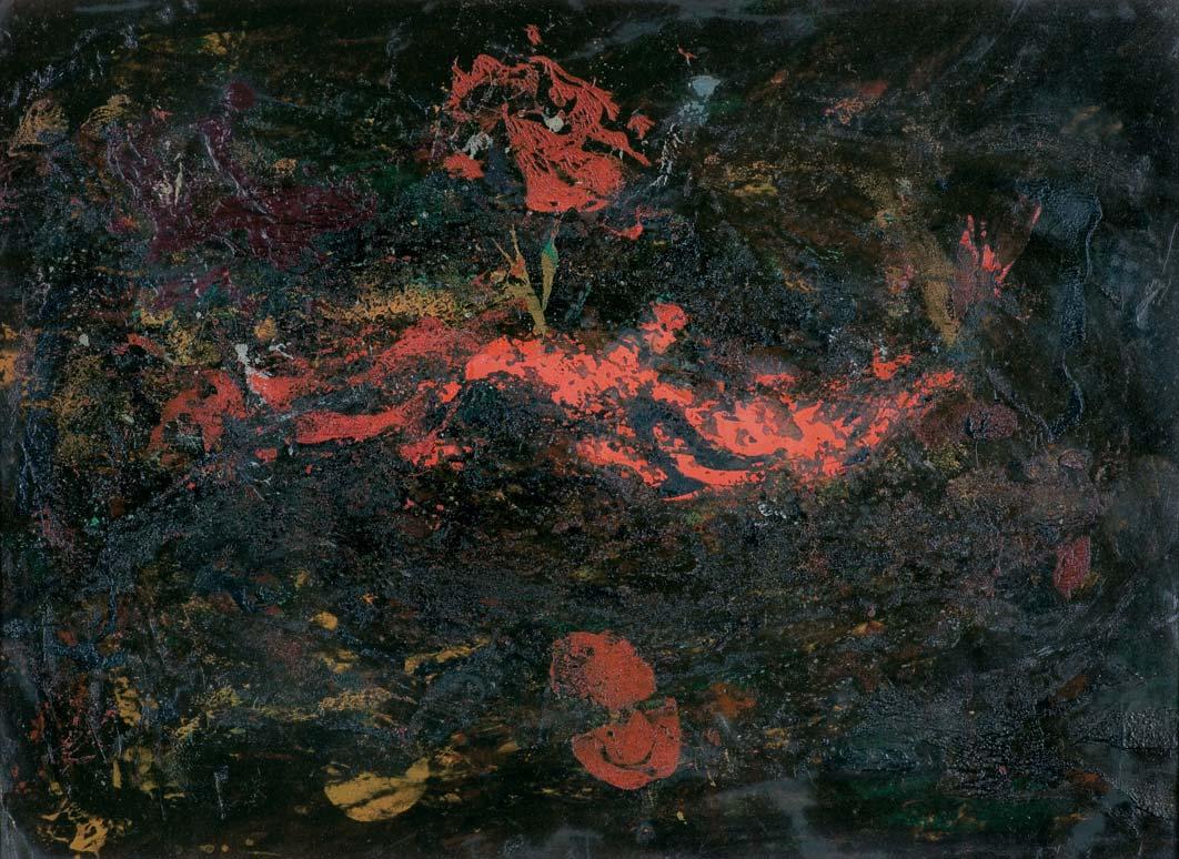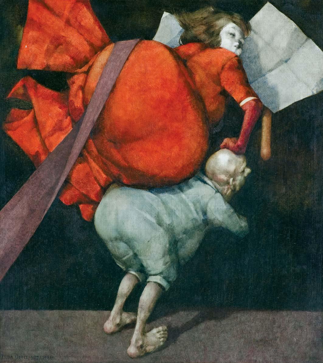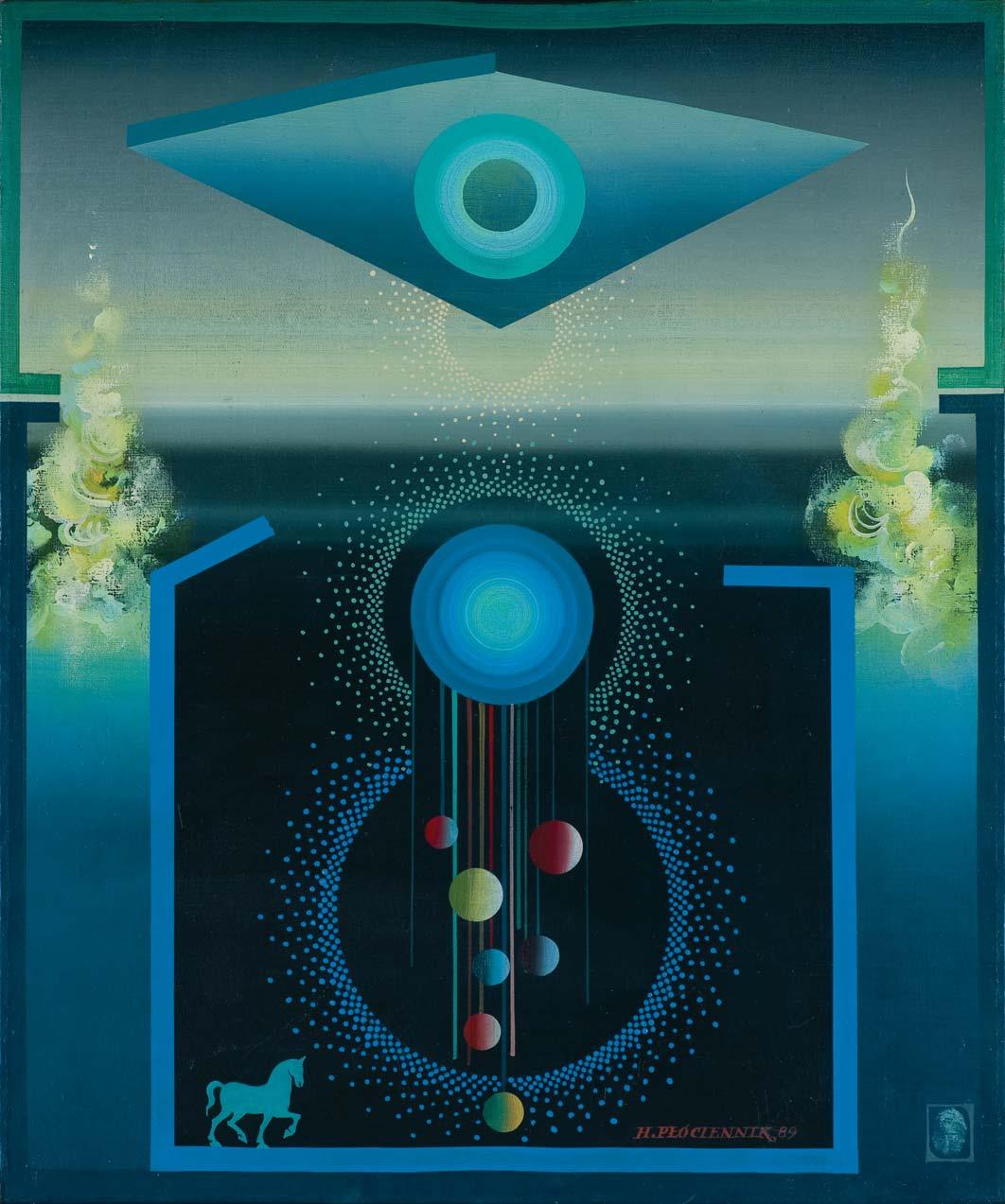 olej, płótno, 65 x 54 cm sygn. p.d.: H. PŁÓCIENNIK 89 obok odcisk kciuka na odwr. na g. listwie krosna fragment nalepki z danymi obrazu