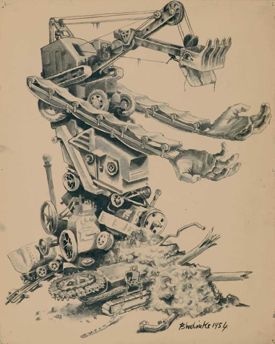 Właśnie tym obrazem. Proponuję na nim nowatorskie rozwiązanie dwóch problemów: wody pitnej i transportu (drogą wodną najtańszy). Ostrzegam również przed niebezpieczeństwami ze strony drapieżnej fauny marsjańskiej i wyjaśniam, skąd się wzięły kanały.