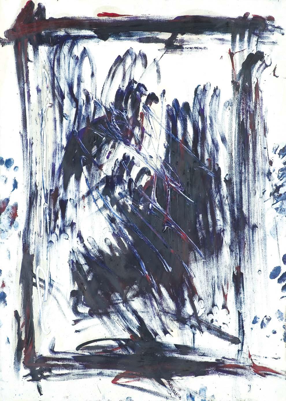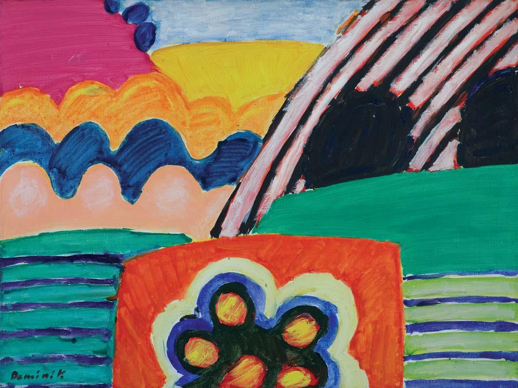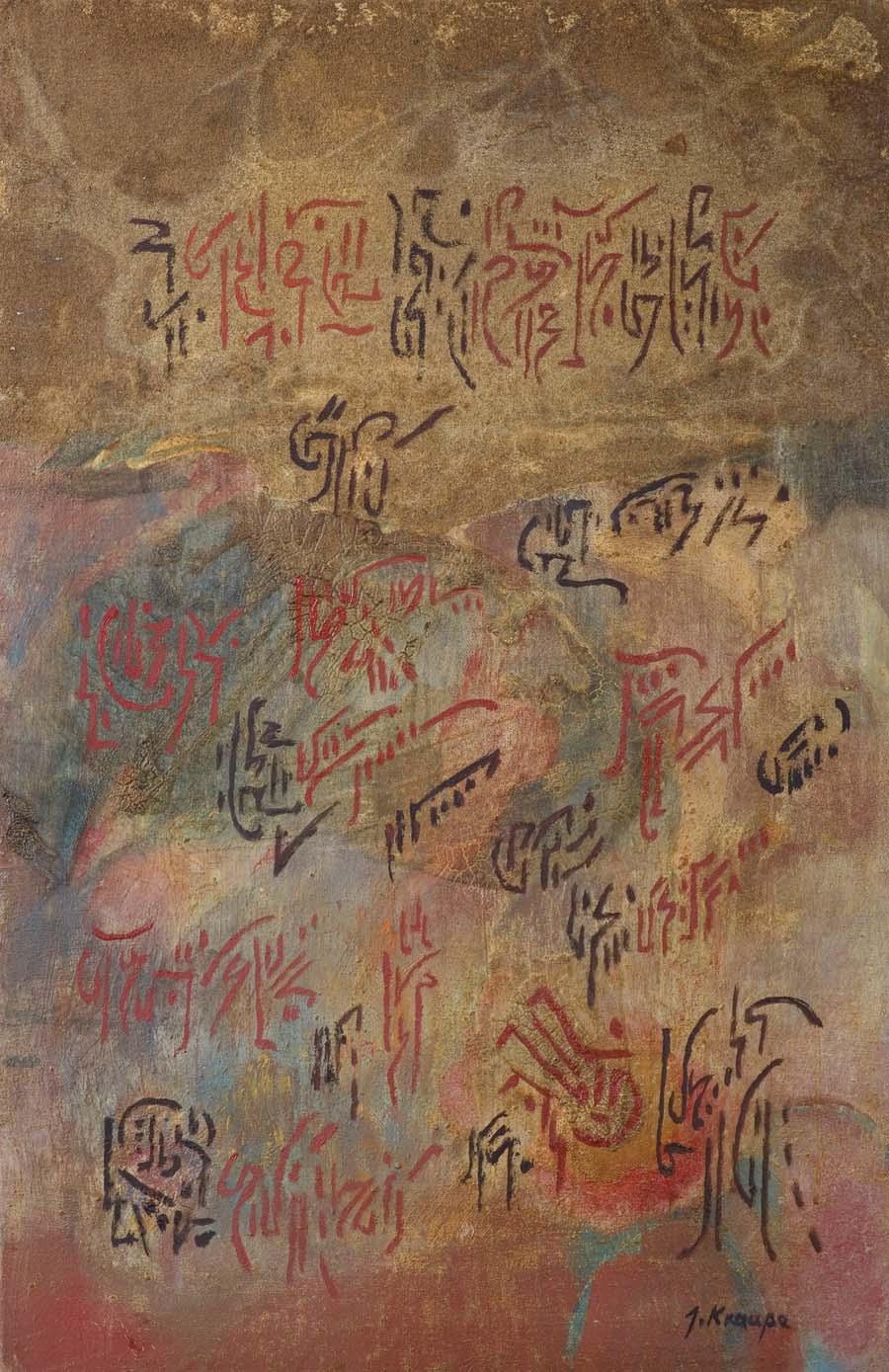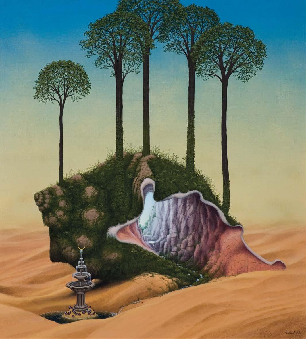 akryl, płótno, 90,5 x 82 cm; sygn. p.d.: JERKA 88 sygn. na odwr. na dolnym krośnie: JACEK JERKA | „OAZA“ | AKRYL 1988