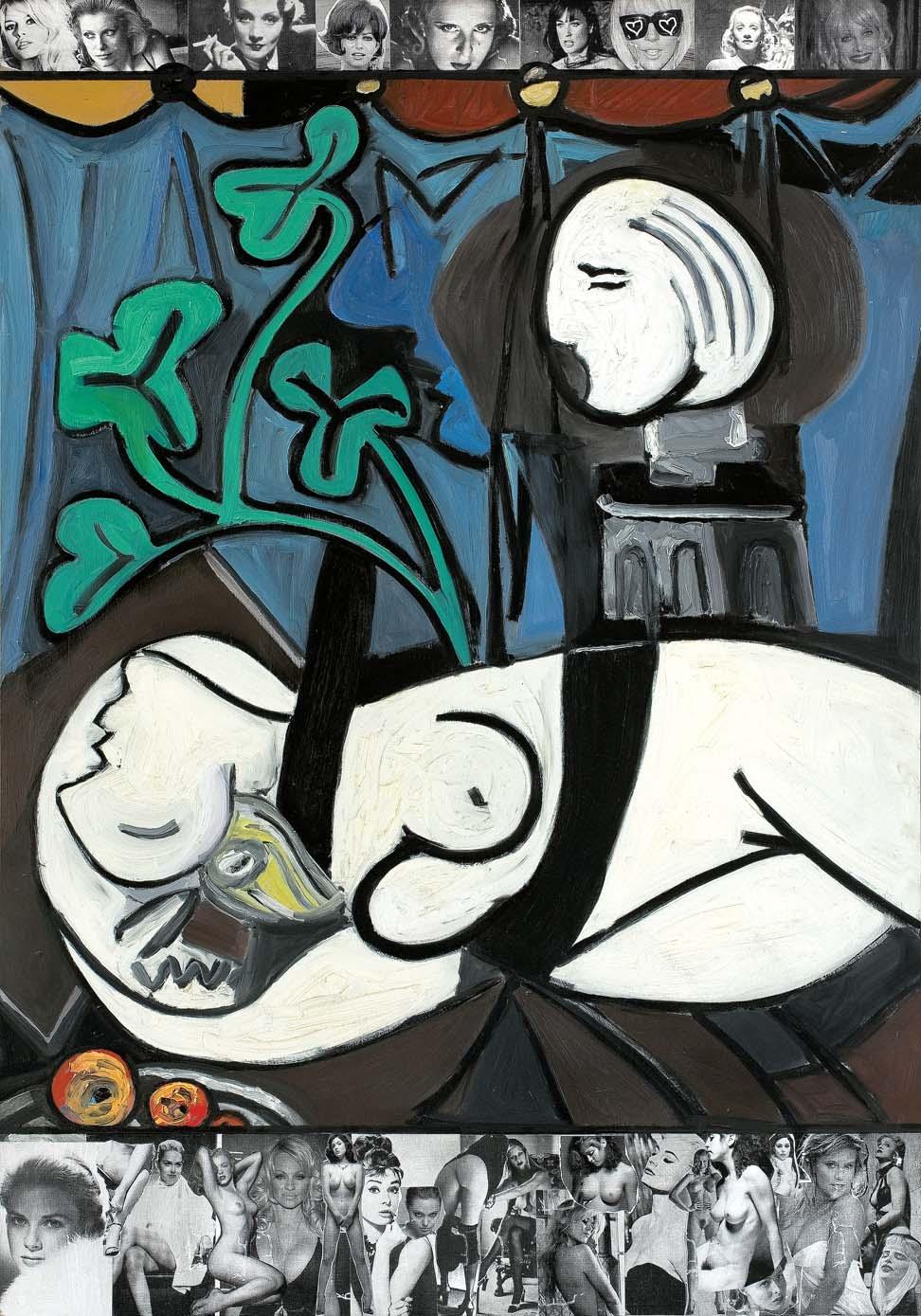 olej, kolaż, płyta, 135 x 93 cm sygn. na odwrocie flamastrem: „CAŁE PIĘKNO tego ŚWIATA / TRIBUTE to PABLO PICASSO, Nude, | GREEN LEAVES and Bust / z cyklu PIĘKNO W SZTUCE“ | The KRASNALS ‘2012