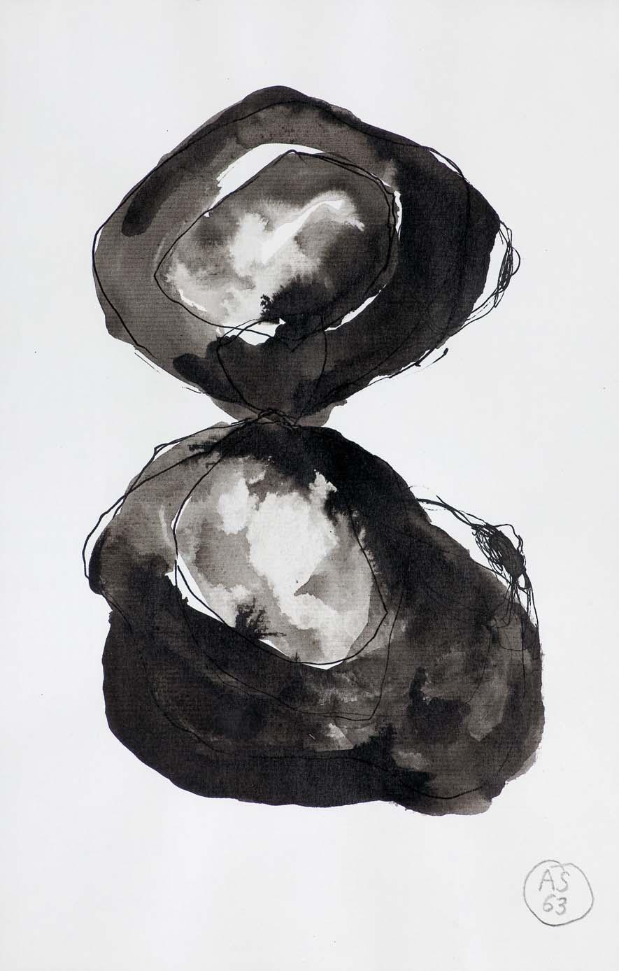 na odwr. na płótnie sygn.: E MINCIEL | XXX | AKRYL, CEMENT | WERNIKS | 2014; po lewej strzałka