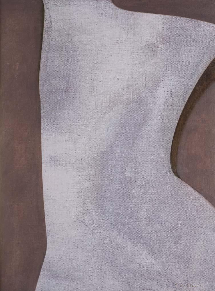 73 x 60, na płótnie napis: P OZ 021, przy p. krawędzi pieczątka zezwalająca na wywóz za granicę; na odwr. nalepka galerii japońskiej (?) ręcznie wypełniona: #3002 | JerzyDuda-Gracz | (1941~) | „Melancholia 1“ | (1.500)
