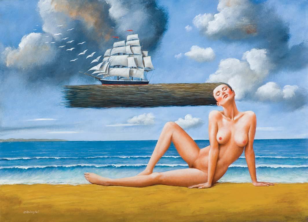 olej, akryl, płótno, 76 x 105 cm sygn. l.d.: Olbinski