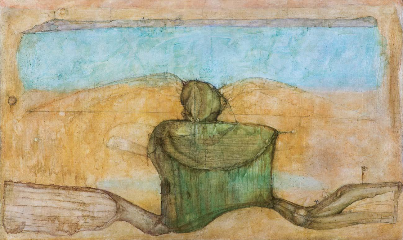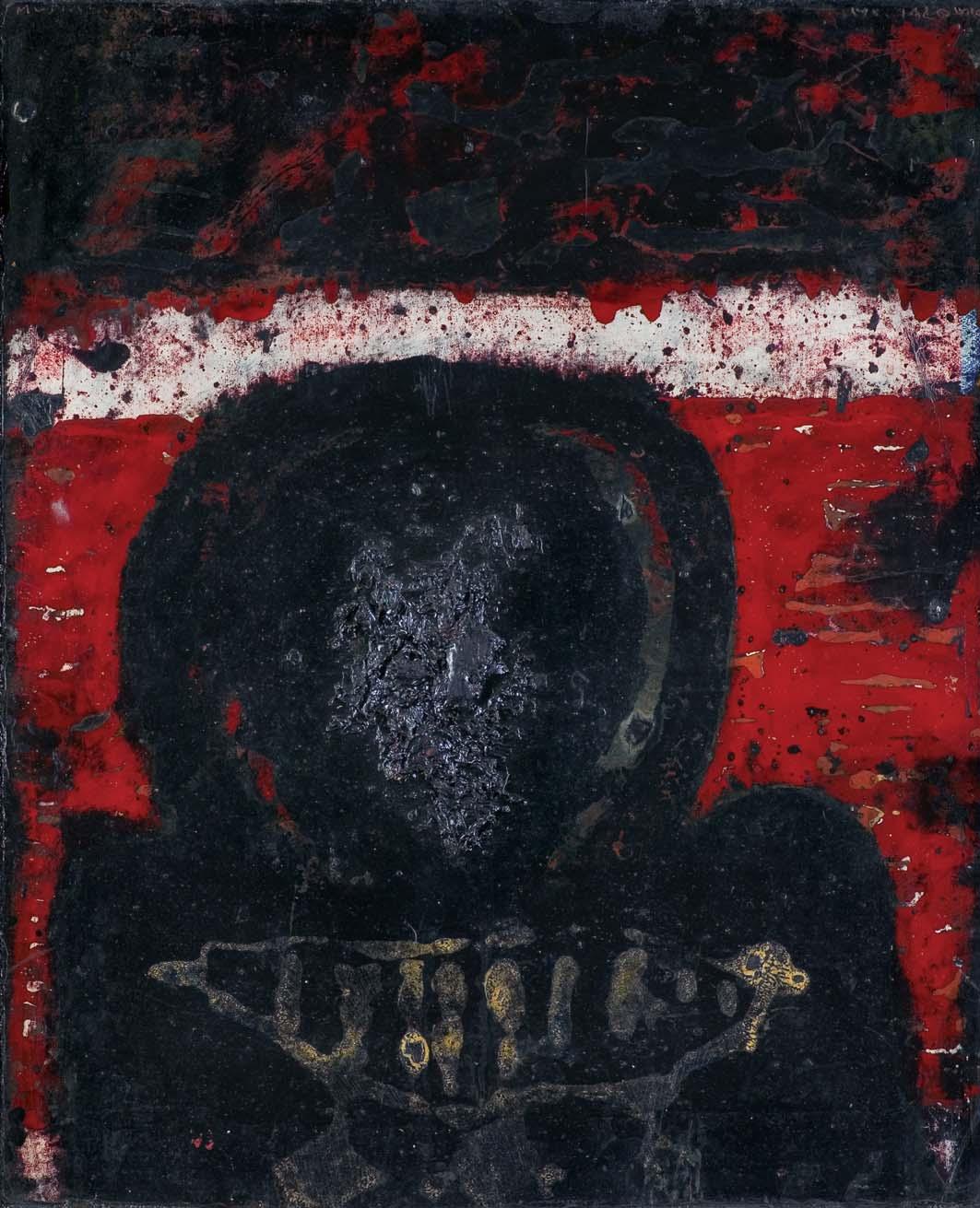 technika mieszana, płyta pilśniowa, 72,5 x 59,6 cm sygn. l.g. i p.g.: MUSIAŁOWICZ sygn. na odwr.: Z CYKLU | REMINISCENCJE | 1976 | 72,5 x 59,5 | 15 M [w ramce] | MUSIAŁOWICZ | [niżej pieczątka wywozowa], l.g.: 21 | M | 170., p.d.: XXX