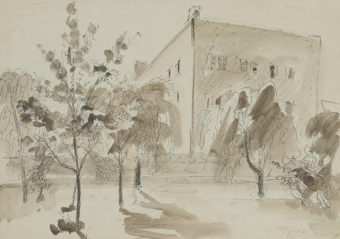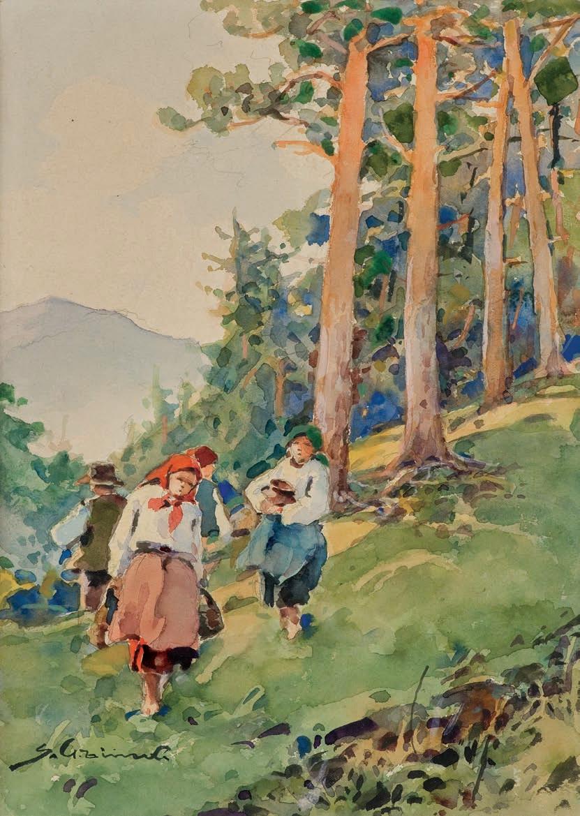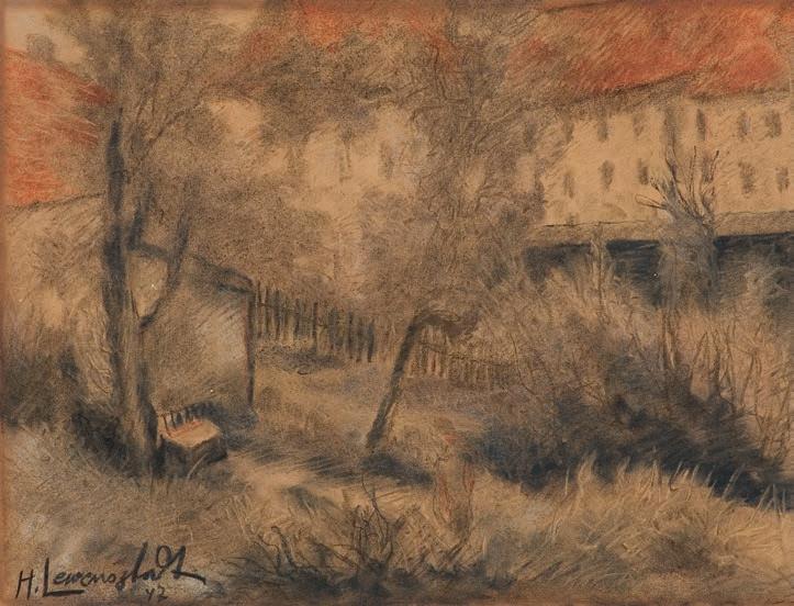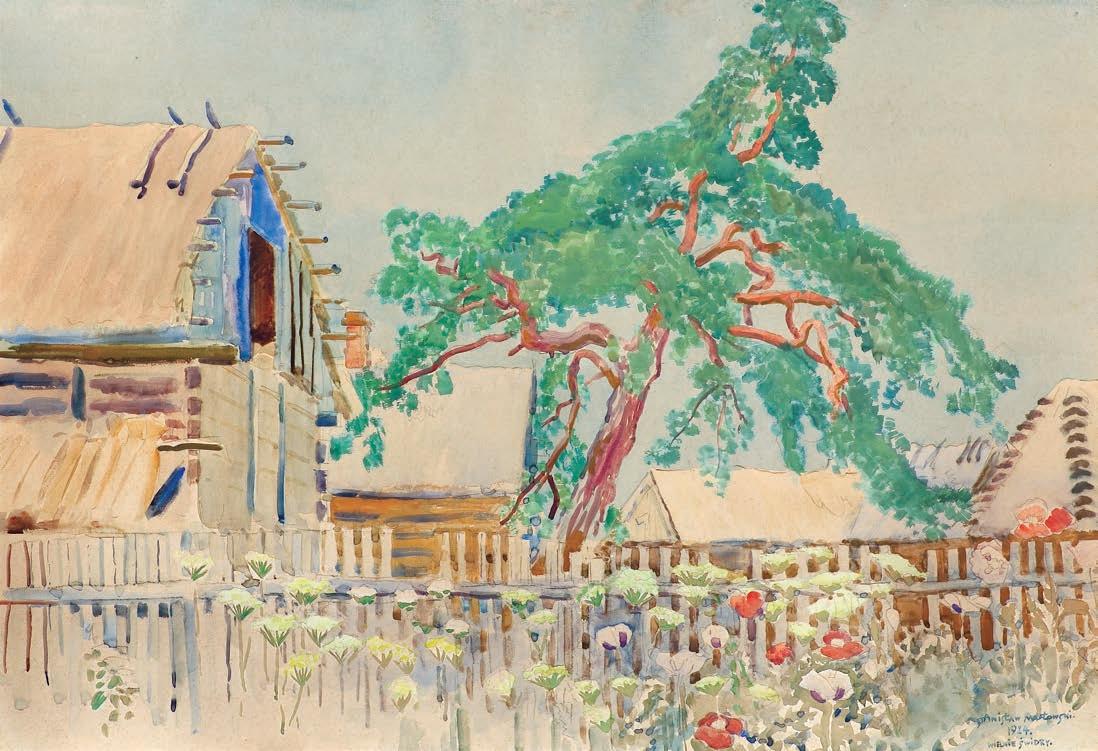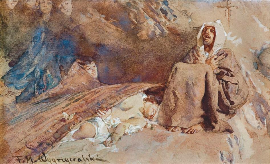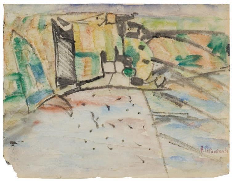 ołówek, akwarela, gwasz, papier naklejony na tekturę, 13,8 x 24 cm sygn. l.d.: F.M.Wygrzywalski