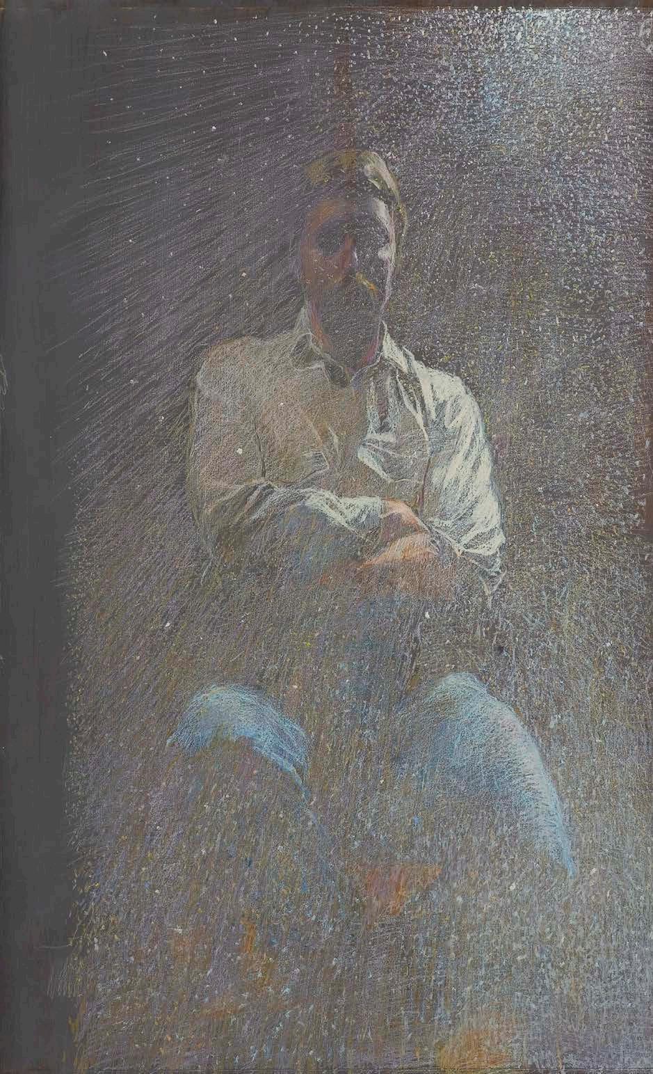 AUTOPORTRET, lata 80. XX w. akryl, pastel, płyta, 97 x 66 cm