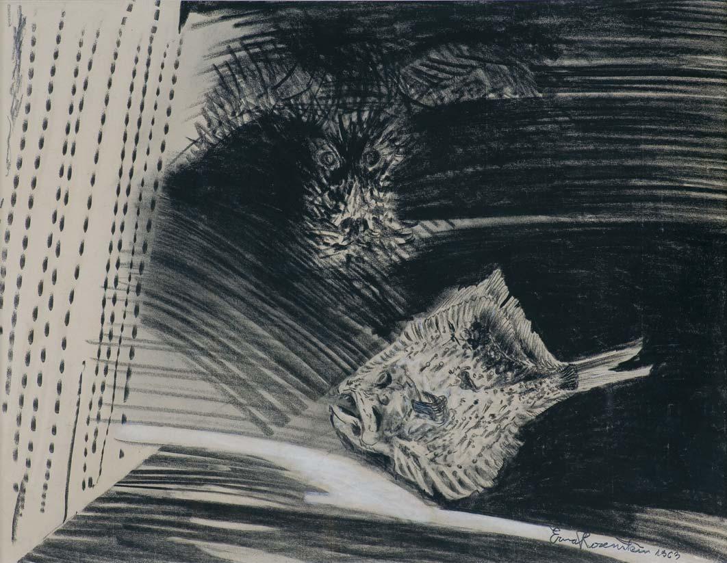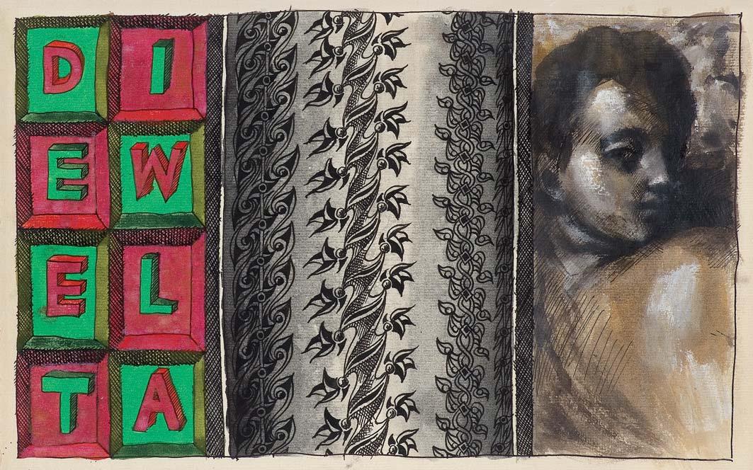 collage (kredki i ołówki na szarym kartonie), 22,5 x 32,5 cm, oprawa 28 x 37,5 x 4 cm sygn. oł. na odwr. p.g.: WŁODZIMIERZ PAWLAK | DZIENNIK B | 7978 – 8081 | III-1999 – 22 III 2000 | 2 [w kółku] na ramie nalepka Galerii Grafiki i Plakatu w Warszawie