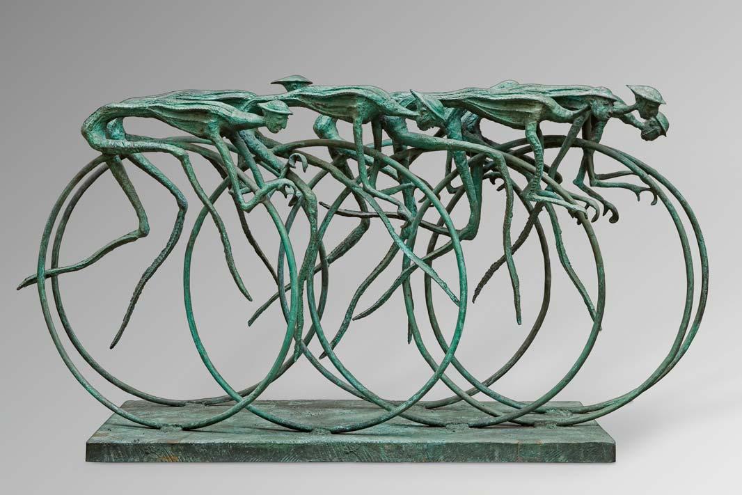 Kompozycje związane z tematyką sportową, Bronisław Chromy najpełniej realizował w trójwymiarowych pracach przestrzennych. Temat Kolarzy pojawił się w kilku kompozycjach Chromego, w różnej skali – od małych form o wysokości 40 cm do największych, przekraczających 2 metry. Jedną z kompozycji z tego cyklu, można podziwiać w Centrum Olimpijskim w Warszawie, inne znajdują się w muzeach i kolekcjach prywatnych. Artysta z niezwykłą trafnością oddał w swojej rzeźbie dynamikę wyścigu kolarskiego poprzez zachodzące na siebie, nadnaturalnie powiększone koła rowerów, pochylone sylwetki kolarzy i wydłużone proporcje ciał. Lata 70. do 90. były czasem wielkich sukcesów polskich kolarzy, co sprzyjało podejmowaniu tego tematu także i w sztuce.