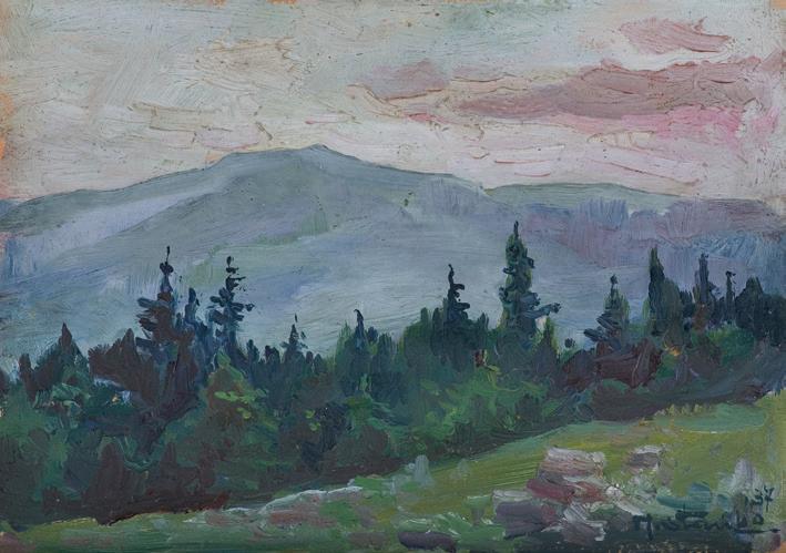 log autorstwa p. Marii Gołąb, który zawiera opisy i reprodukcje wszystkich wystawionych prac artysty. Prezentowany tu obraz znalazł się w grupie zatytułowanej Góry [1906-1907].