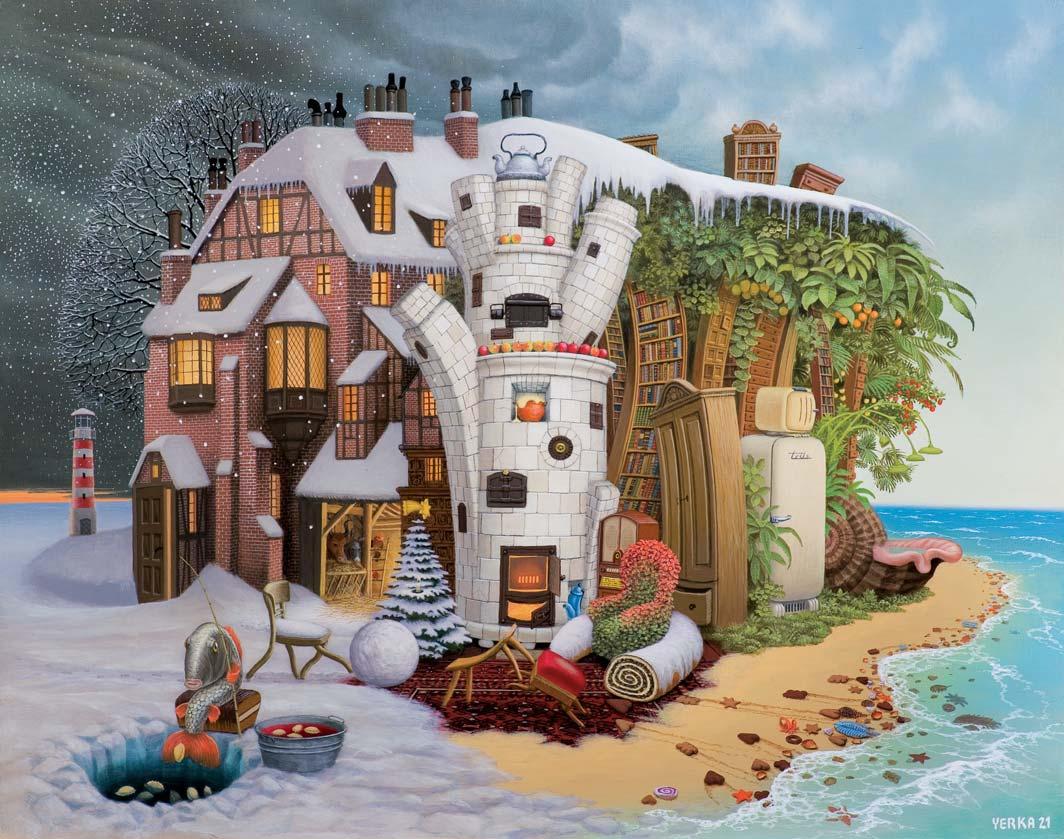 Każda siedziba zupełnie niepodobna do innych, na każdej piętno indywidualności i charakteru właściciela. Wszystkie Madery były regularnie zalewane przez bardzo punktualne powodzie, co najmniej 2 razy w roku; pracowicie i uparcie doprowadzano je do stanu używalności... Wigilijna Madera jest trochę inna. Beztroska, rodzinna, trochę szalona wyspa ze zdziczałymi i niesfornymi meblami (przyznaję, pomysłodawcą był Stanisław Lem); jest świąteczna atmosfera, tradycyjne wypieki (niektóre wypełzają z morza), egzotyczna roślinność i bardzo, bardzo cienka granica między najkrótszym a najdłuższym dniem w roku. Nad wszystkim zaś czuwa kompletnie zdziwaczały piec; niepomiernie rozrośnięty, podgrzewa wigilijną atmosferę i niektóre potrawy.