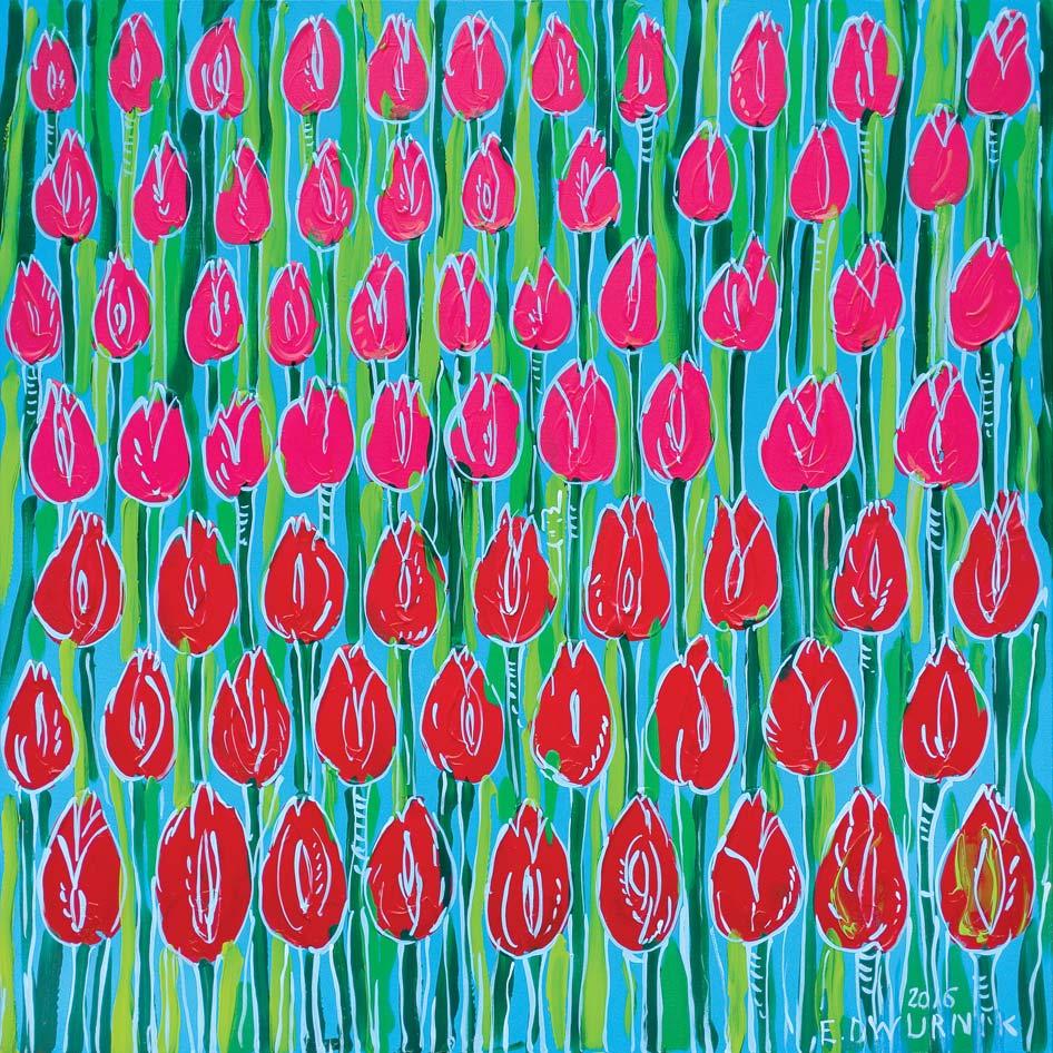 sygn. p.d.: 2016 | E. DWURNIK na odwr. na pł. sygn. i napis: 2016 | E. DWURNIK | „CZERWONETULIPANY“ | NR: XXIII [w ramce] – 1015 – | – 6086