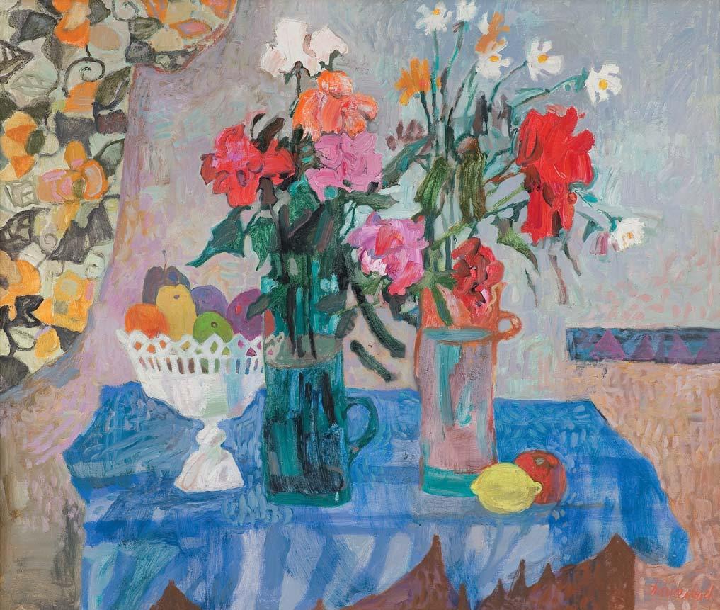 sygn. p.d.: Szancenbach sygn. na odwrocie na płótnie: JAN SZANCENBACH | DWA BUKIETY | 1984