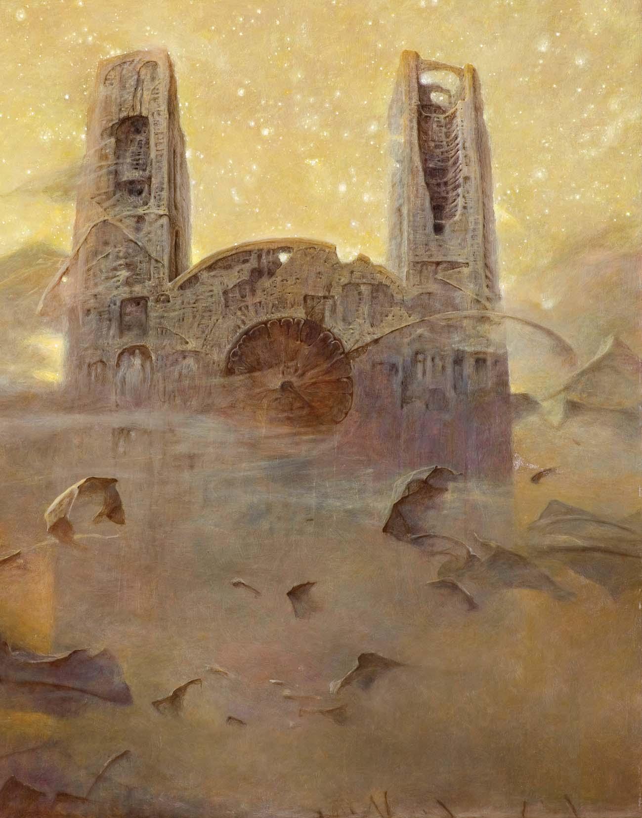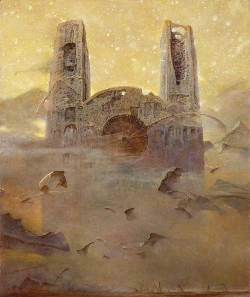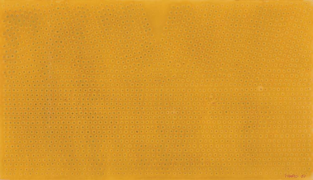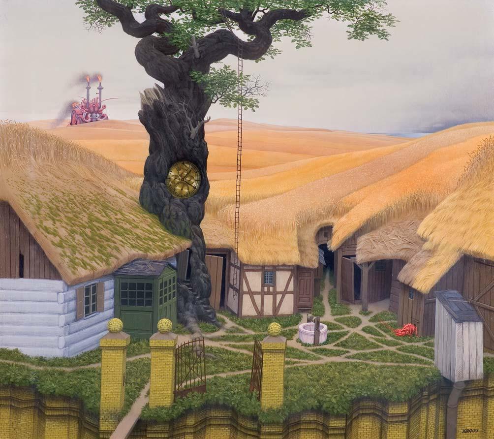 na dolnej listwie krosna napis: JACEK YERKA | „POD PEJZAŻEM II“ | AKRYL 1990