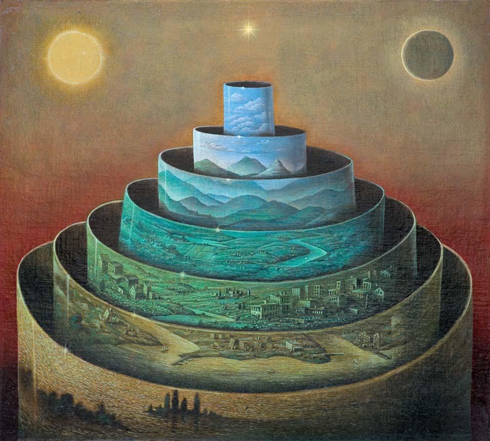 olej, deska, 49,5 x 55 cm sygn. na odwr.: HENRYK WANIEK | SIEDMIOPIĘTROWA GÓRA [w ramce] | .1989.