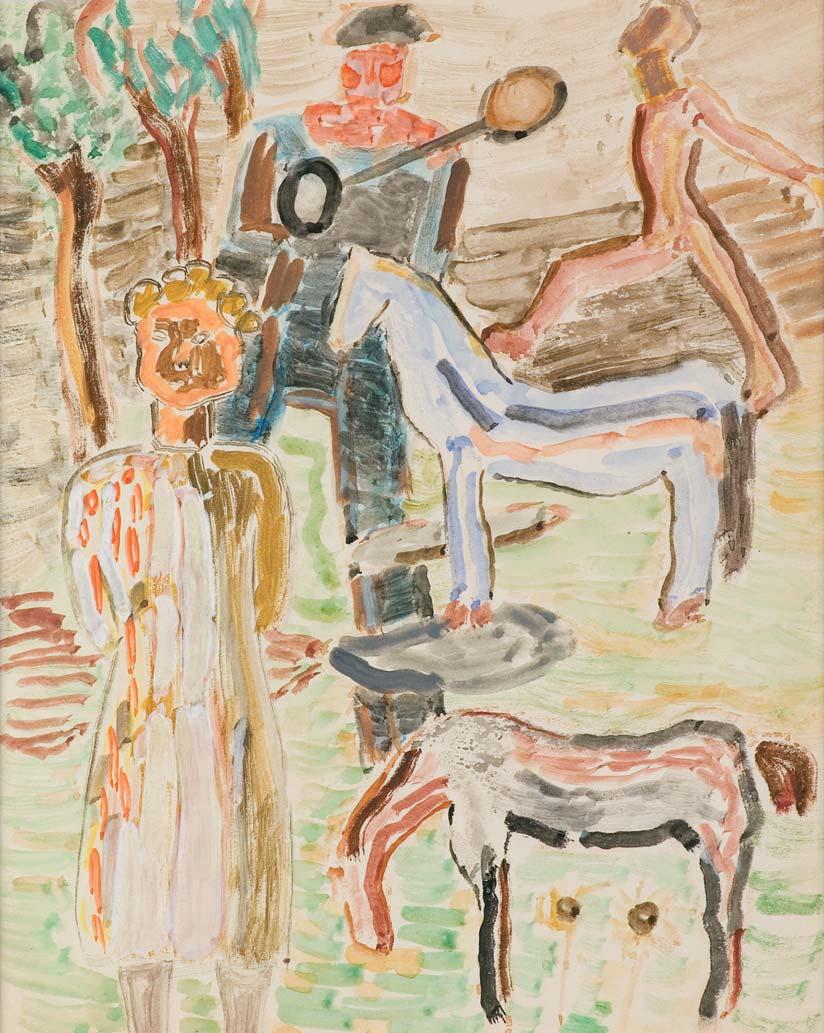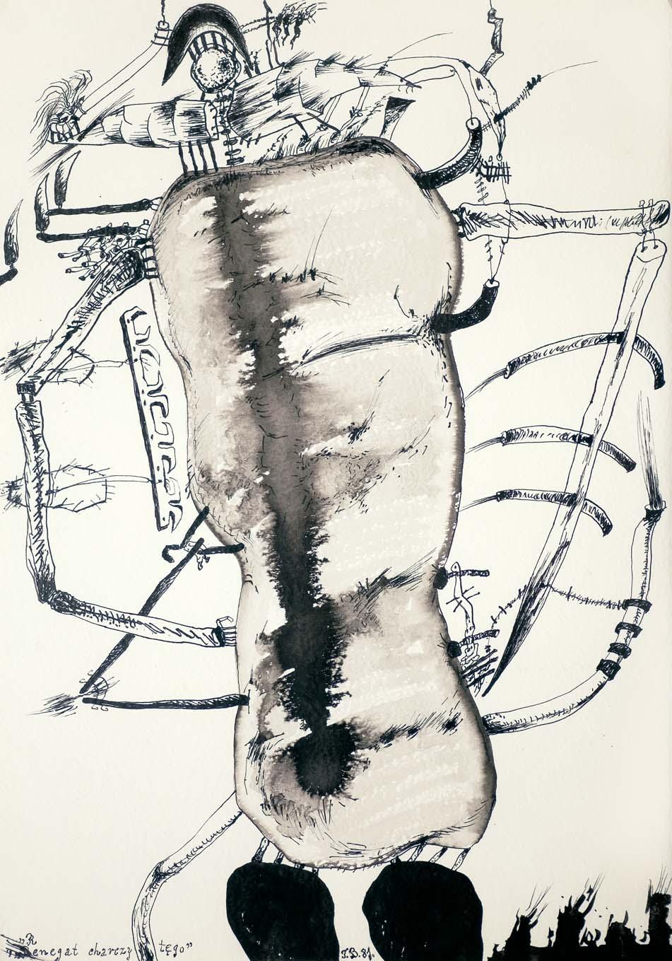 tusz pędzel, akwarela, gwasz, papier, 47 x 34,5 cm (w świetle passe-partout) sygn. tuszem p.d.: PORTOCARERRO | 83 wyżej dedykacja dłg. (częściowo oł.): Para Isabel | y Tony René