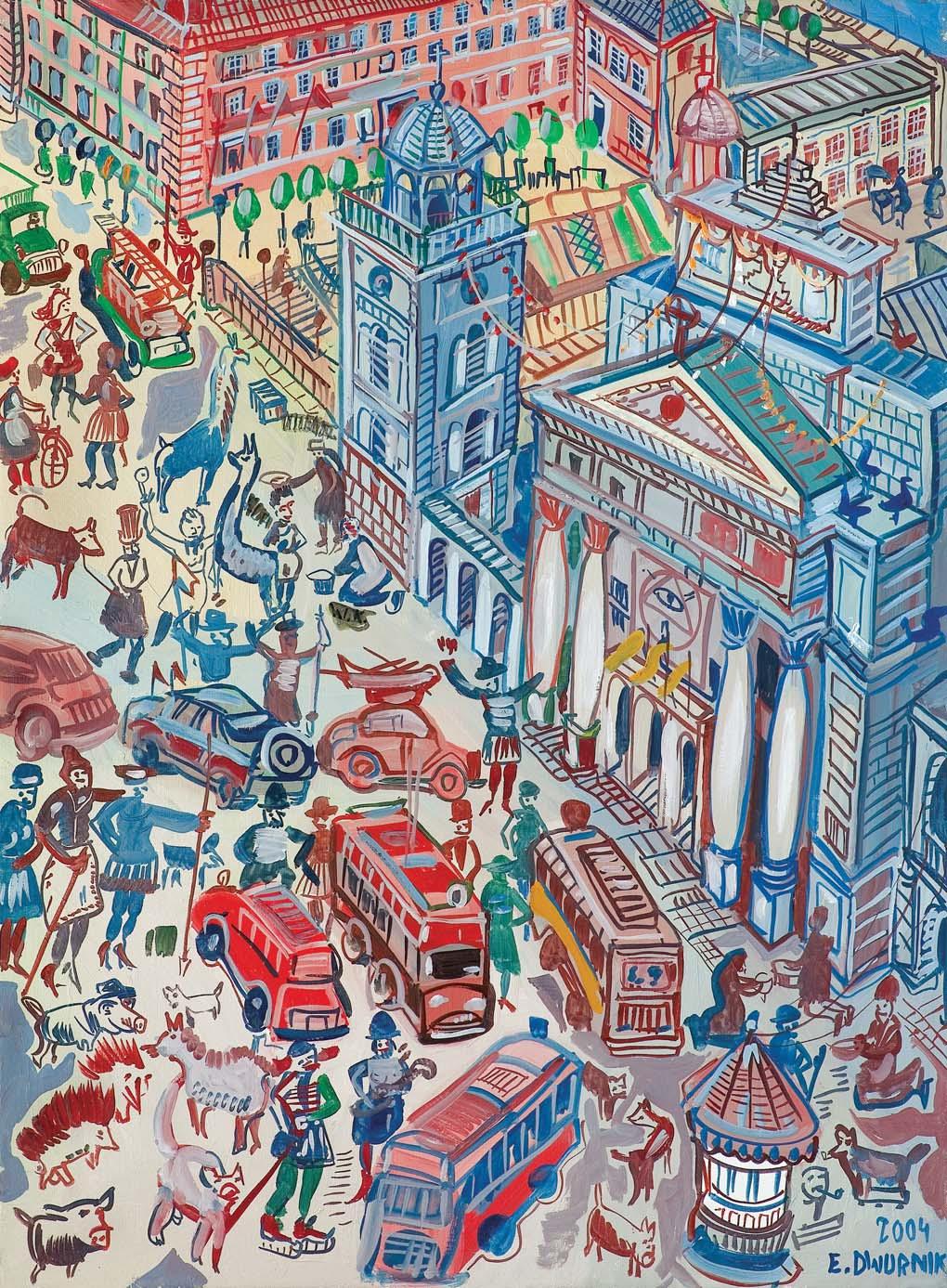 olej, płótno, 100 x 73 cm; sygn. p.d.: 2004 | E. DWURNIK sygn. na odwr. na płótnie l.g.: W-Wa | XI [w ramce] – 338 [w ramce] | 3141 [w ramce]
