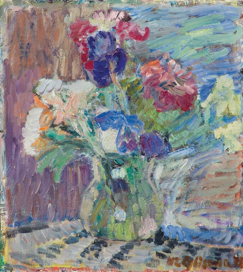 olej, płótno, 61,5 x 55,5 cm; sygn. p.d.: H.Z. Cybisowa 78 na odwr. na pł. g.: Helena Z. Cybisowa 78 w ... | Bukiet ... u dołu ślad pieczątki wywozowej z podpisem